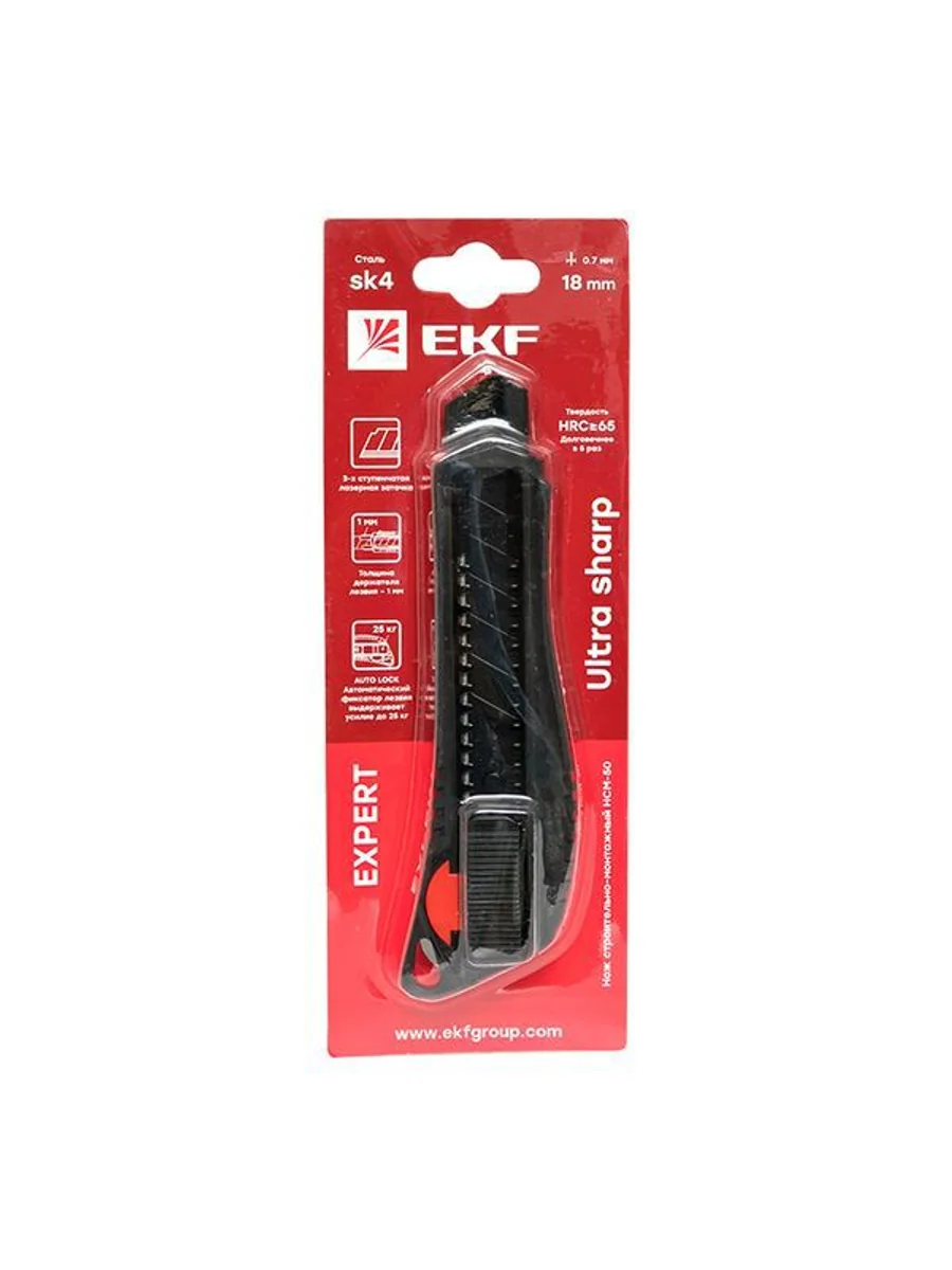 Нож строительно-монтажный 18мм НСМ-50 (18мм)(SK4) Heavy Duty (до 25кг) Expert EKF ncm-50-exp