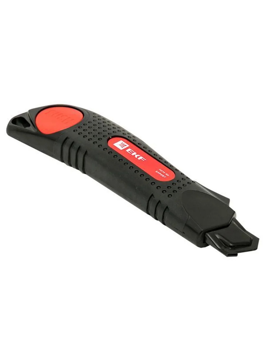 Ножи строительно-монтажные со сменными выдвижными сегментированными и трапециевидными лезвиями EKF серии MASTER и EXPERT служат для резки различных строительных материалов (линолеум, ковровые покрытия, обои, гипсолитовые плиты, гипсокартон, кровельные материалы, пластик, дерево, макетных работ). Могут применяться как в бытовых условиях, так и профессионалами. Прочный металлический корпус со вставками из резины и пластика позволяет прикладывать значительные усилия при резе. Обрезиненный корпус обеспечивает крепкий и надежный хват без опасения соскальзывания руки в зону реза. Фиксаторы различной конструкции надежно удерживают лезвие при работе с большими усилиями. Ассортимент сменных лезвий, выполненных из высокопрочной инструментальной стали долго держат заточку и сохраняют высочайшую режущую способность инструмента. Увеличенное с 7 до 14 число ломающихся сегментов лезвий удваивает ресурс инструмента.