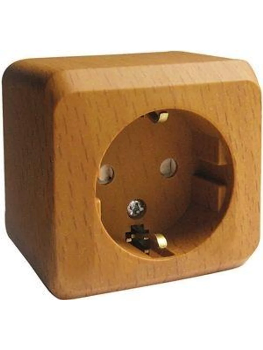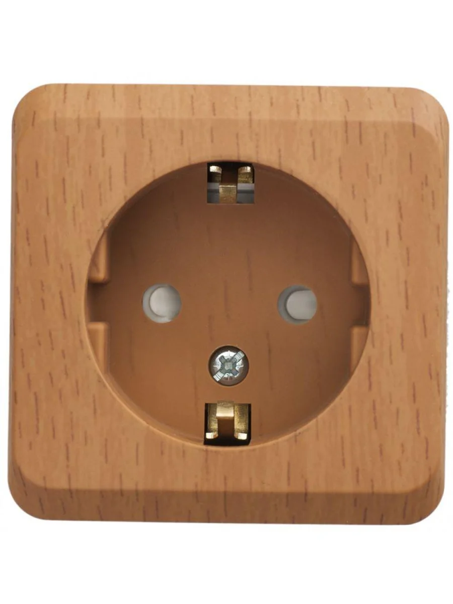 Розетка Systeme Electric (ранее Schneider Electric) ЭТЮД (бук, открытой установки) одноместная с заземлением и шторками предназначена для применения в сетях до 250В, на ток до 16А. Шторки открываются при одновременном давлении в оба отверстия и препятствуют проникновению посторонних предметов. Они обеспечивают дополнительную безопасность в доме, где находятся дети. Изделия цвета Бук обладают уникальным рисунком, напоминающим древесный сруб. Сделано в России.