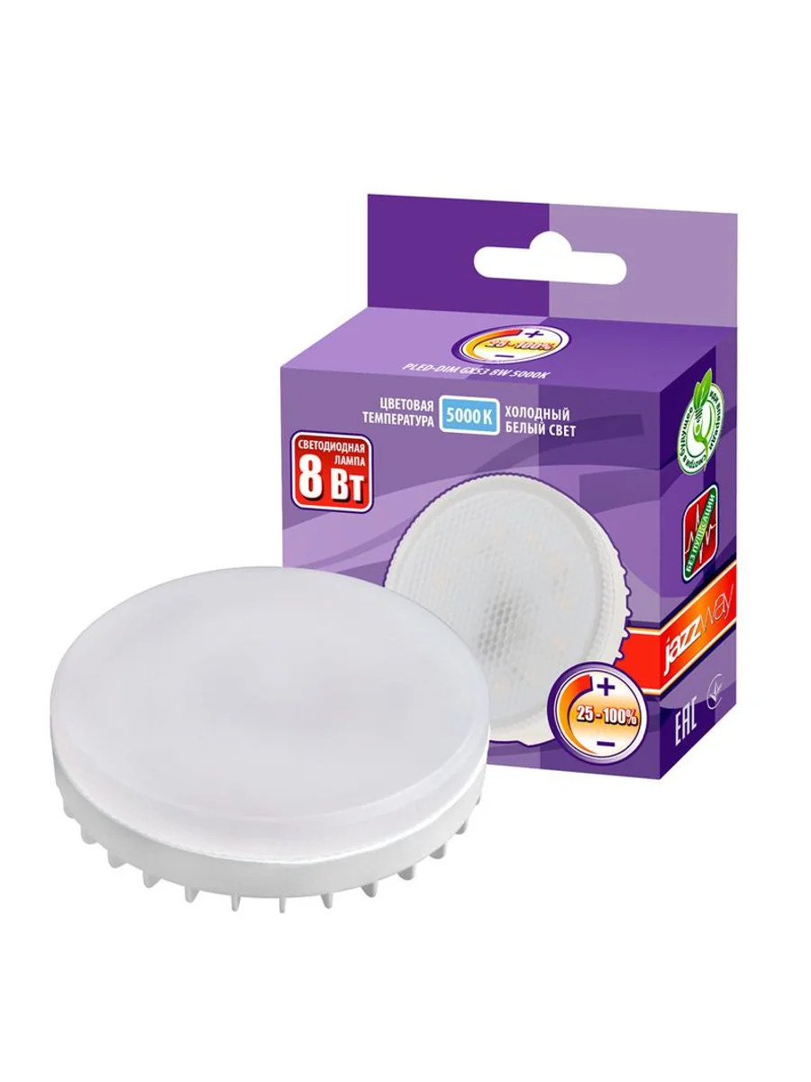 Лампа светодиодная PLED-DIM 8Вт таблетка 5000К холод. бел. GX53 640лм 230В/50Гц диммир. JazzWay 5011281 - купить в KeepBuilding | KeepBuilding