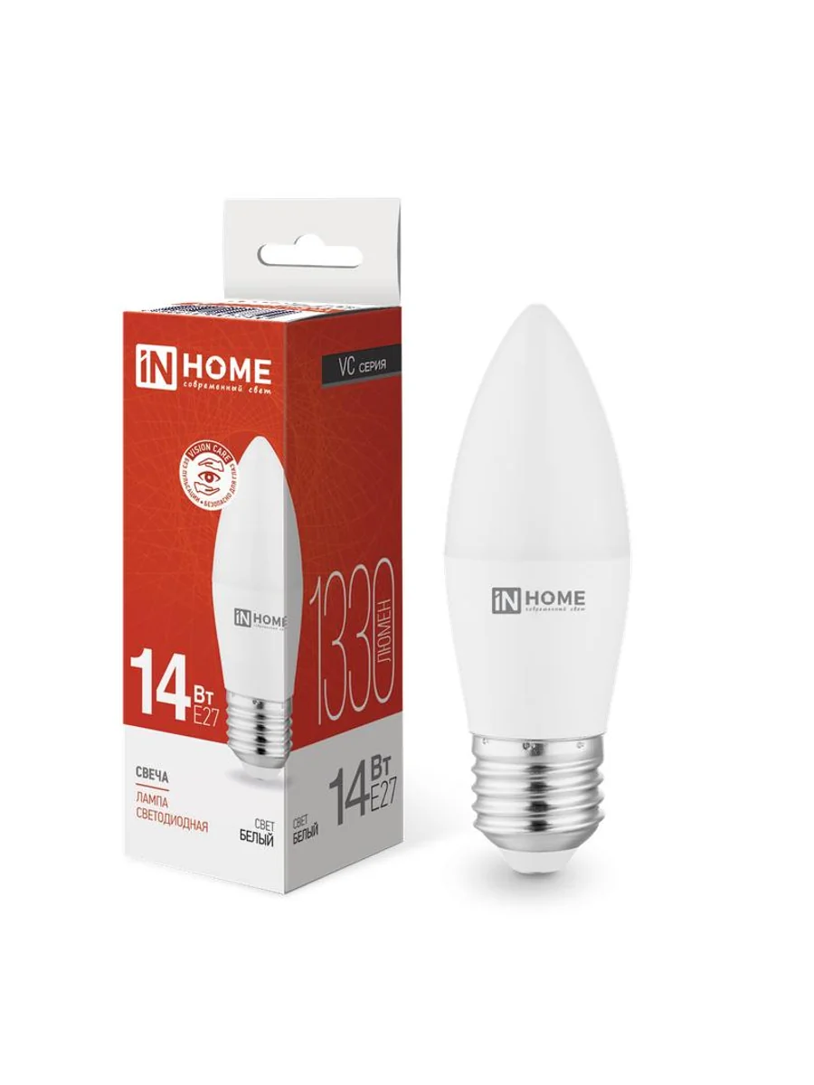 Лампа светодиодная LED-СВЕЧА-VC 14Вт E27 4000К 1330лм IN HOME 4690612047744 - купить в KeepBuilding | KeepBuilding