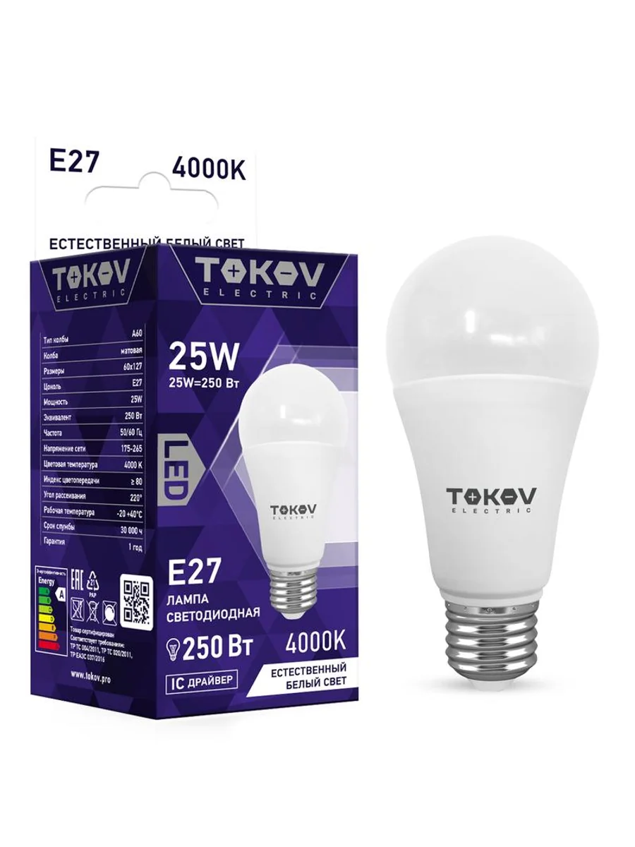 Лампа светодиодная 25Вт А60 4000К Е27 176-264В TOKOV ELECTRIC TKE-A60-E27-25-4K - купить в KeepBuilding | KeepBuilding