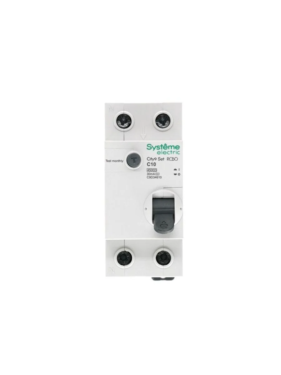 Автоматические выключатели дифференциального тока (АВДТ) серии City9 Set Systeme Electric,1P+N, номинальный ток 10 А, характеристика С, Icn = 4.5 кА, ток утечки 30 мА, тип АС. АВДТ применяется в электрических сетях напряжением 230В. Предназначен для защиты сети от перегрузок, людей от поражения электрическим током и токов короткого замыкания. Уставка по току утечки 30 мА обеспечивает гарантированную защиту людей при прямом прикосновении. Кнопка тест обеспечивает проверку работоспособности аппарата. Крепление на DIN-рейку шириной 35 мм. Безопасные клеммы (ранее Schneider Electric EZ9D34610).