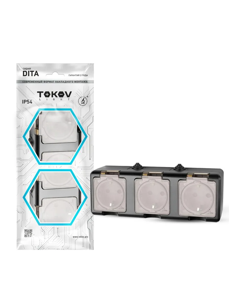 Розетка 3-м ОП Dita 16А IP54 250В с заземл. с прозр. крышкой карбонTOKOV ELECTRIC TKL-DT-R3Z-C14T-IP54 - купить в KeepBuilding | KeepBuilding