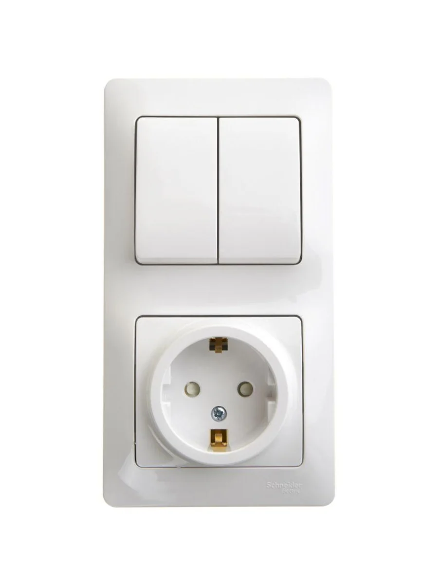 Блок комбинированный Systeme Electric (ранее Schneider Electric) серии Glossa (в сборе, цвет белый) предназначен для сетей до 250 В, состоит из розетки с заземлением и шторками на 16 А и 2-клавишного выключателя на 10 А. - Блок удобен в применении и отлично подходит для коридора. - Заземляющий контакт обеспечивает дополнительную защиту от удара электрическим током. При наличии заземления электрический потенциал уходит в землю, защищая человека. - Двухклавишный выключатель позволяет управлять двумя источниками света из одной точки.