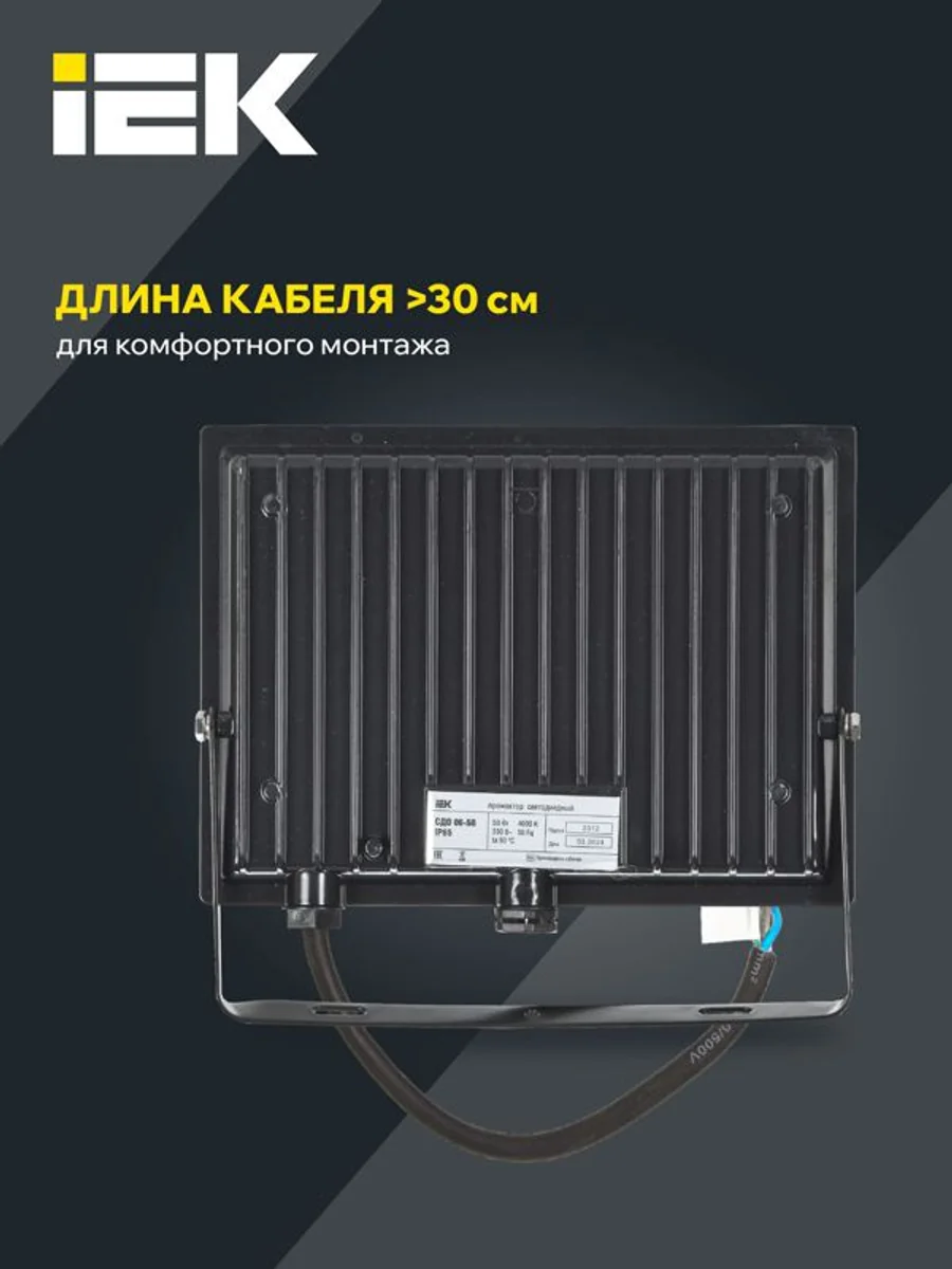 Прожекторы IEK СДО 06 нового поколения стали ещё более удобными и долговечными. 100% мощность. Честные ватты. Отражатель новой формы и рассеиватель из калёного стекла. Прожектор соответствует UGR < 19. Увеличена длина кабеля до 350 мм. Клапан выравнивания внутреннего давления защищает прожектор от попадания влаги. Монтажная скоба с изогнутым основанием для установки на стену. Влагозащищённая кабельная муфта, встроенная в корпус, позволяет сохранить защиту от пыли и влаги IP65 без дополнительных вспомогательных устройств (для прожекторов мощностью 150 и 200 Вт). Мощность и световой поток 100% соответствуют заявленным на упаковке.