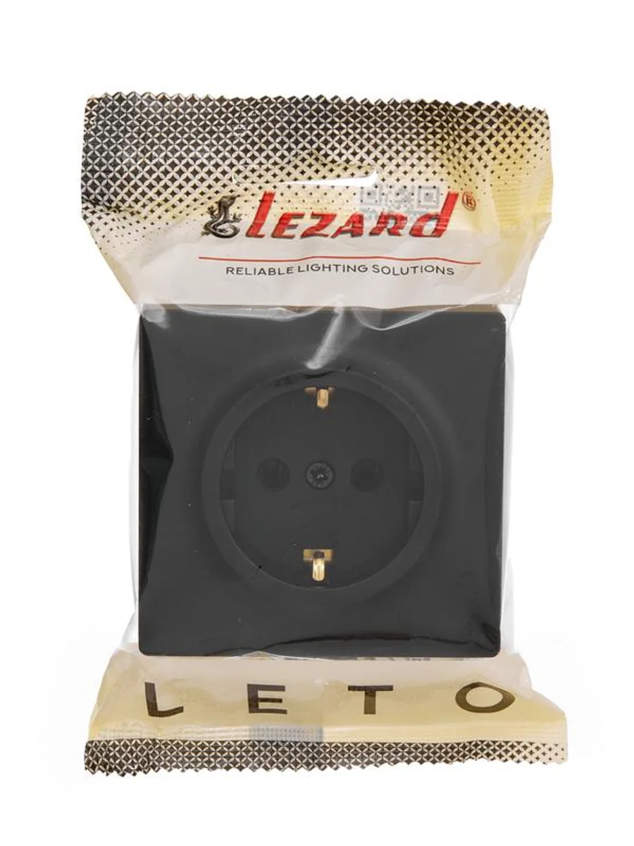 Розетка 1-м ОП LETO с заземл. ПБТ черн. бархат LEZARD 752-4200-122B - купить в KeepBuilding | KeepBuilding