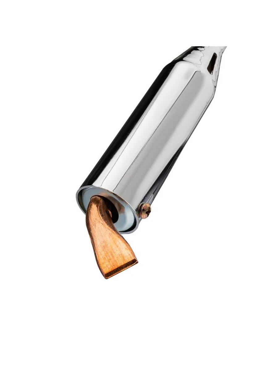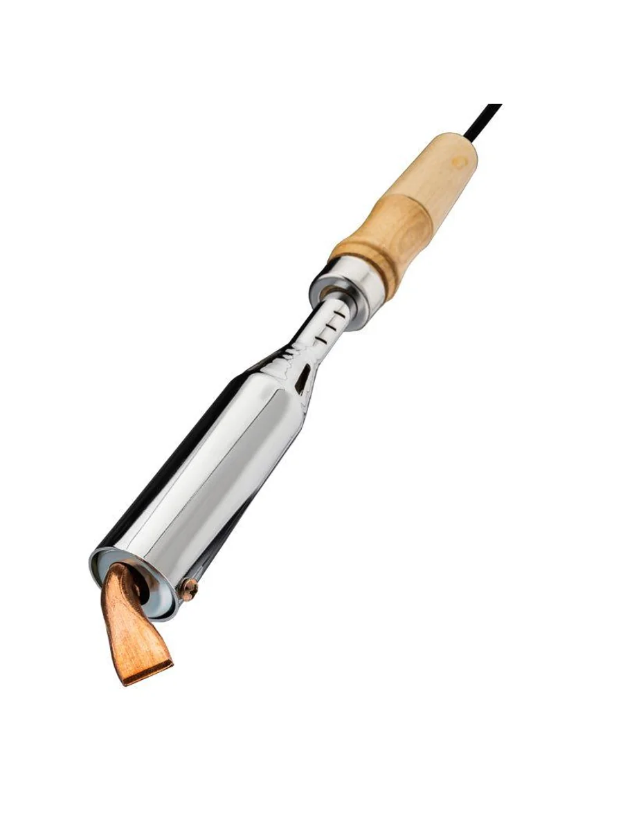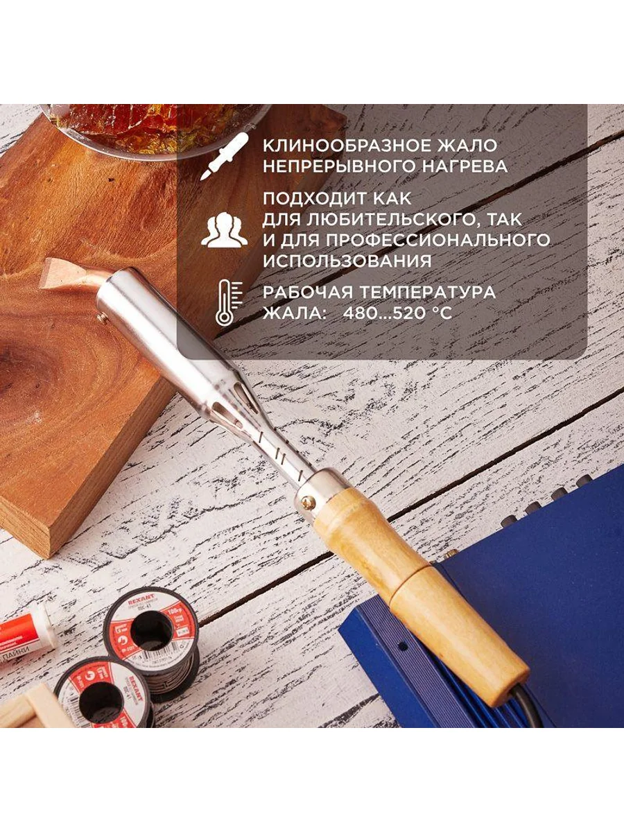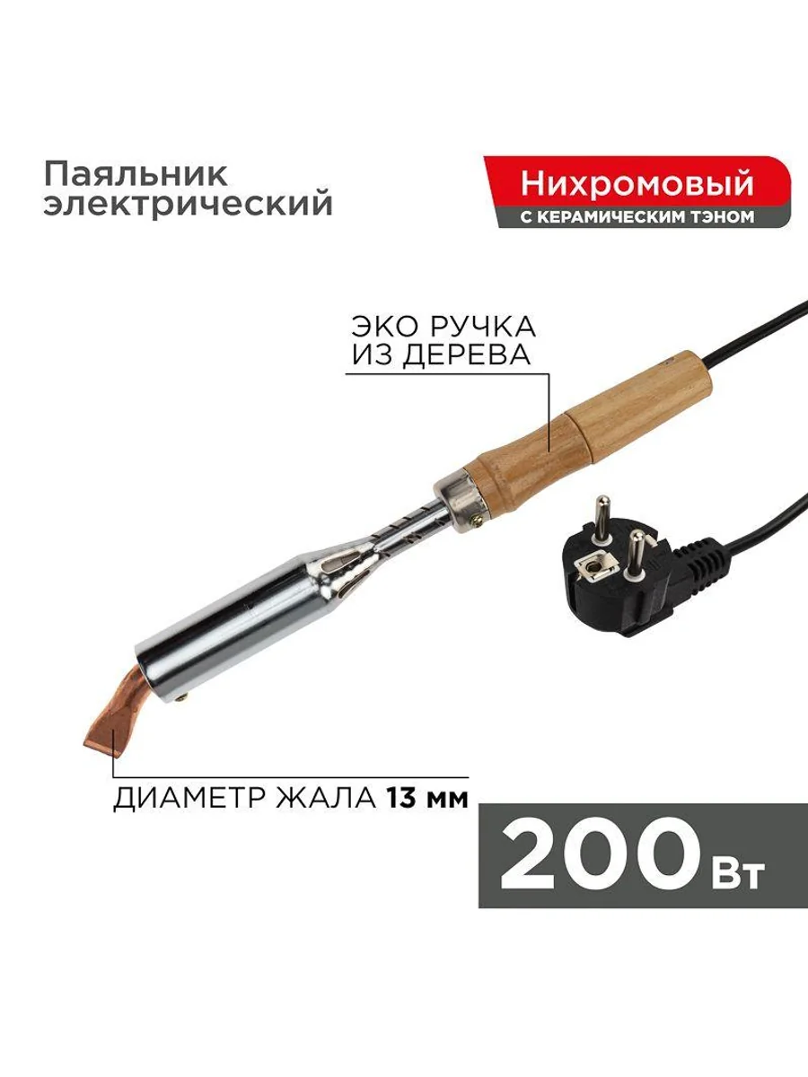 Паяльник высокомощный серии ЭПСН мощностью 200Вт REXANT предназначен для ручной пайки тонкостенных металлических изделий или листов, а также для лужения проводов или кабельных наконечников. Подходит как для любительского, так и для профессионального использования. Нагреватель имеет керамическую трубку, что обеспечивает быстрый прогрев жала, увеличивает энергоэффективность паяльника и продлевает его срок службы. Медное жало выполнено в форме клина (лопатки) с загнутым окончанием, в случае необходимости его можно легко и быстро заменить (сменное жало в комплект не входит). Удобная эргономичная рукоятка выполнена из экологически чистого материала - дерева, что сделает работу с инструментом легкой и приятной.