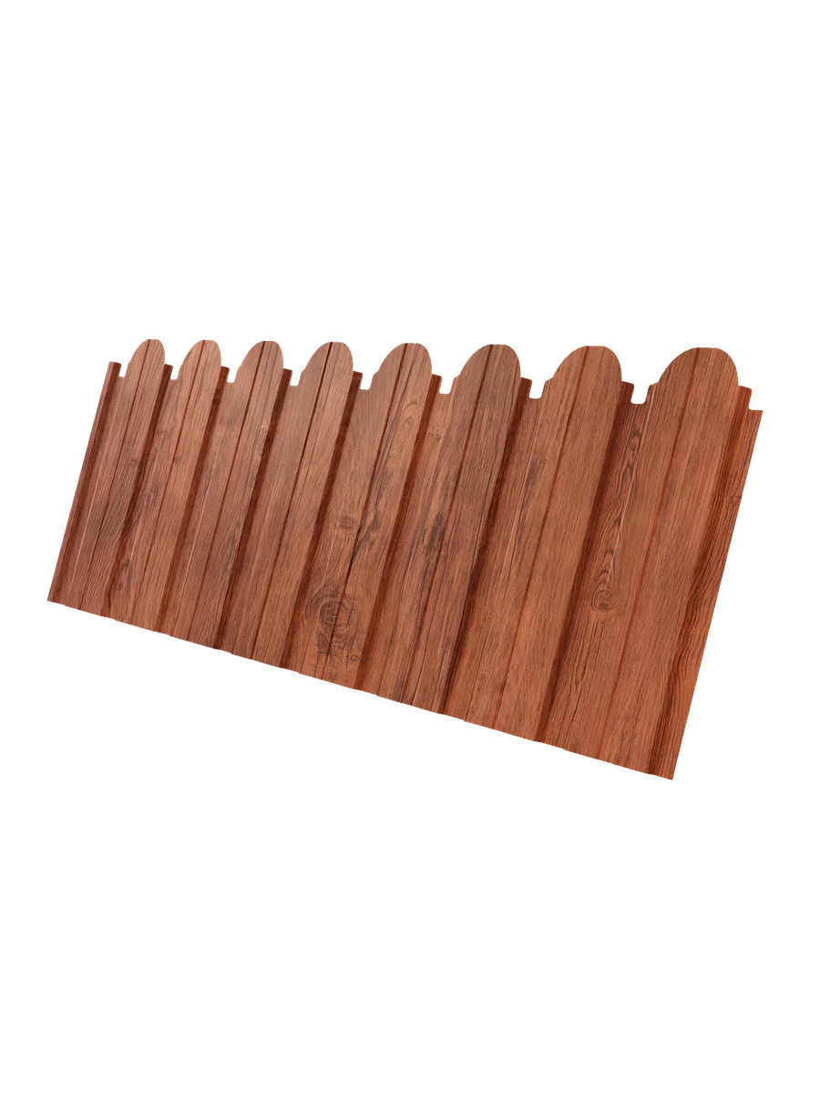 Профнастил C10B фигурный Grand Line с толщиной стали 0,45 мм и покрытием Print Premium в цвете Rowan Wood Intense FTC представляет собой высококачественный материал для строительства. Этот профнастил идеально подходит для использования в качестве кровельного материала, а также для облицовки фасадов зданий. Благодаря своей уникальной форме и толщине стали, он обеспечивает надёжную защиту от внешних воздействий и долговечность конструкции.