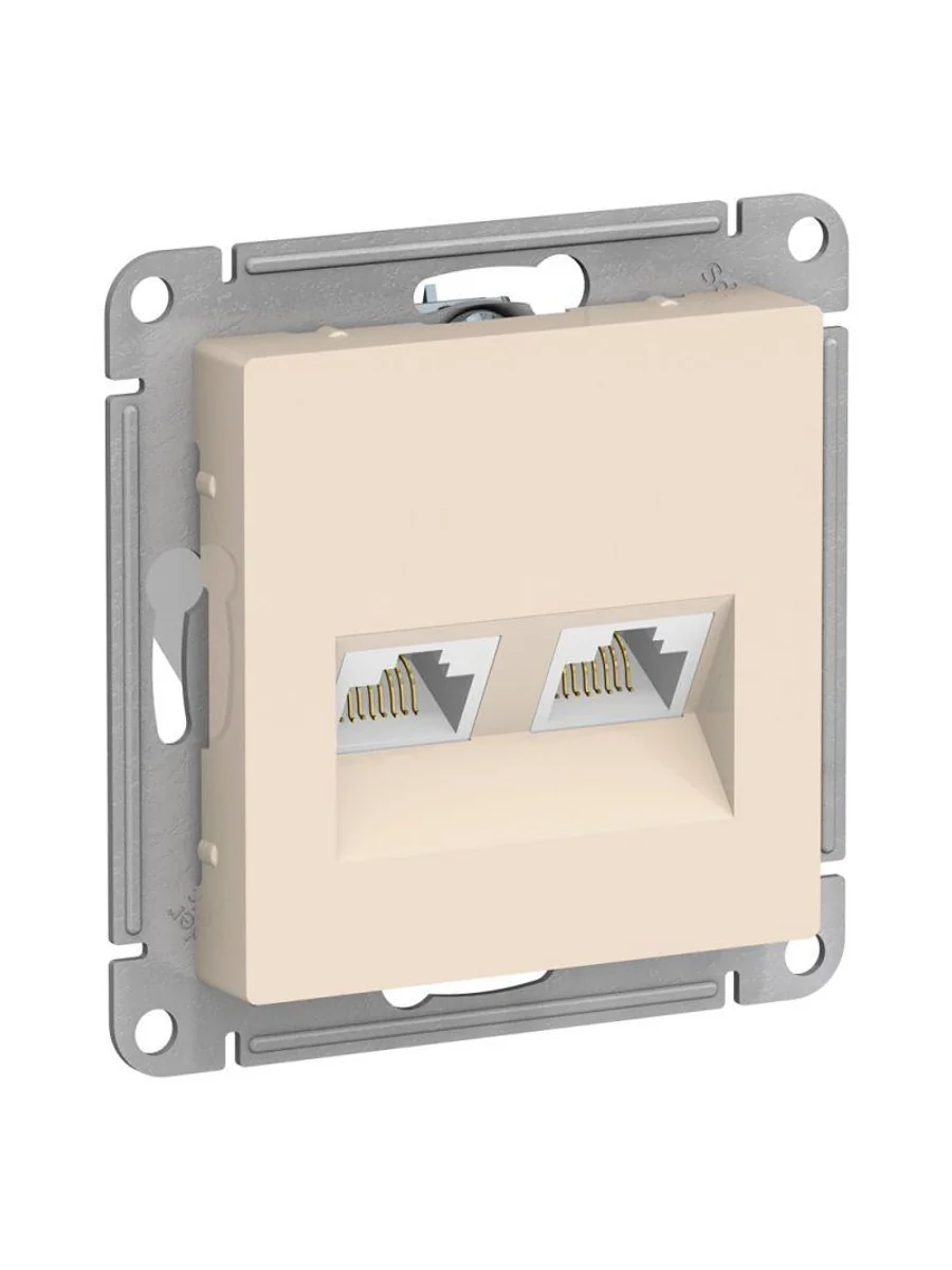 Механизм Systeme Electric (ранее Schneider Electric) серии AtlasDesign в цвете бежевый двойной розетки компьютерной с разъёмом RJ45 категория 5е предназначен для удобного и быстрого подключения вашего компьютера к локальной вычислительной сети. Лицевые детали из качественного ABS-пластика, устойчивого к царапинам и УФ-излучению. Усиленные прямые монтажные лапки для лучшей фиксации механизма в монтажной коробке.