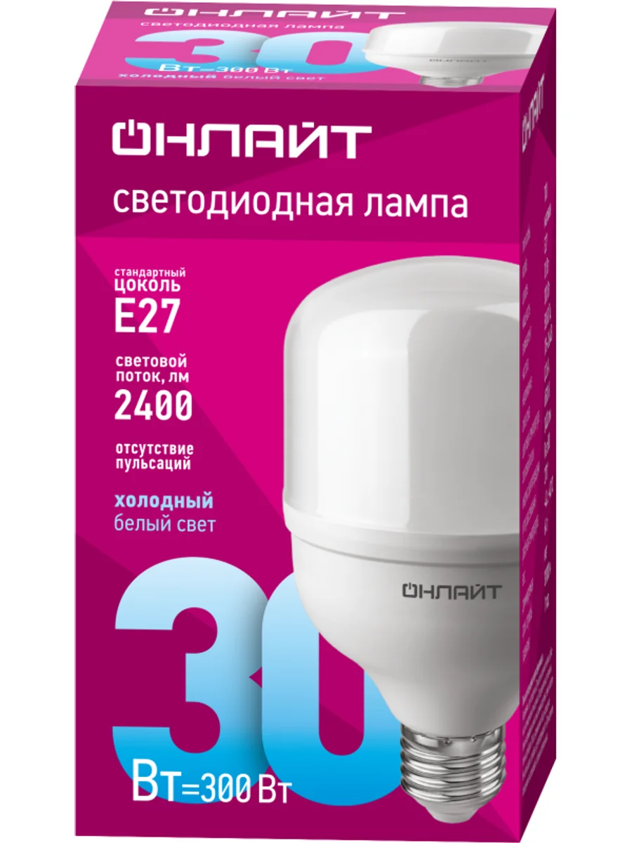 Лампа светодиодная высокомощная 82 901 OLL-T80-30-230-865-E27 30Вт 6500К холод. бел. E27 2400лм 176-264В ОНЛАЙТ 82901 - купить в KeepBuilding | KeepBuilding