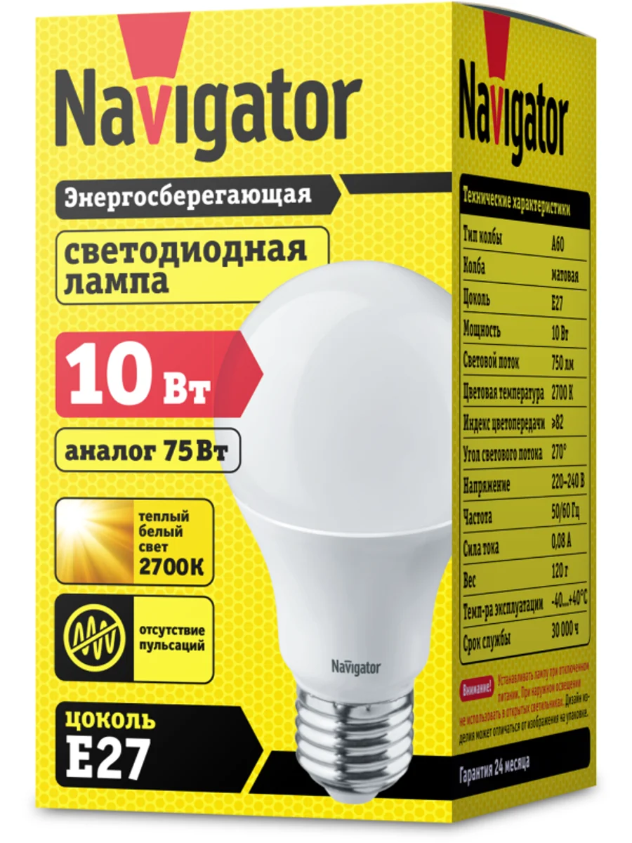 Лампа светодиодная 94 387 NLL-A60-10-230-2.7K-E27 10Вт грушевидная 2700К тепл. бел. E27 750лм 176-264В Navigator 94387 - купить в KeepBuilding | KeepBuilding