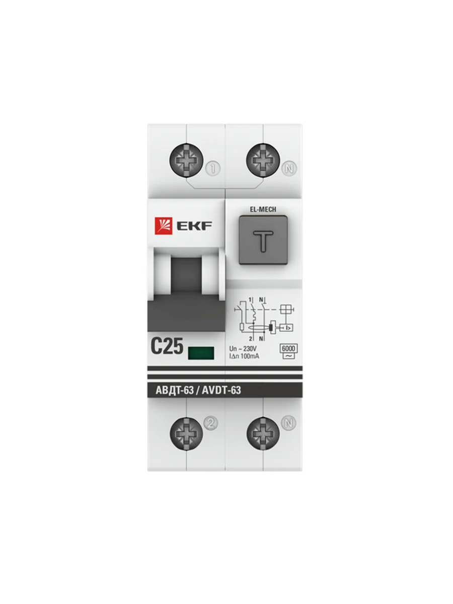 Выключатель автоматический дифференциального тока 25А 100мА тип AC 6кА АВДТ-63 электромех. PROxima EKF DA63-25-100em-AC - купить в KeepBuilding | KeepBuilding