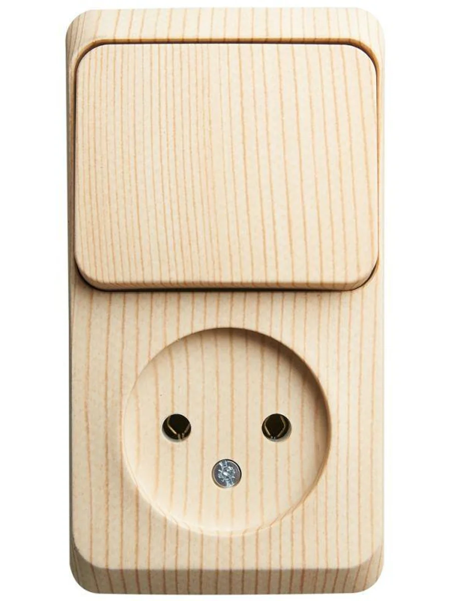 Блок Systeme Electric (ранее Schneider Electric) ЭТЮД (сосна, открытой установки) предназначен для применения в сетях до 250В, состоит из розетки без заземления, без шторок на 16А, и одноклавишного выключателя на 10А. Он удобен в применении и отлично подходит для коридора. Заземление обеспечивает безопасность при косвенном прикосновении. Изделия цвета Сосна обладают уникальным рисунком, напоминающим древесный сруб. Сделано в России.