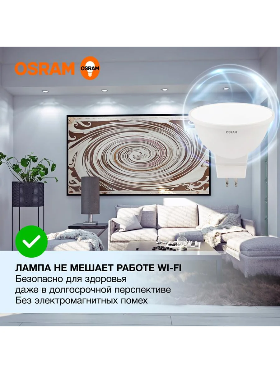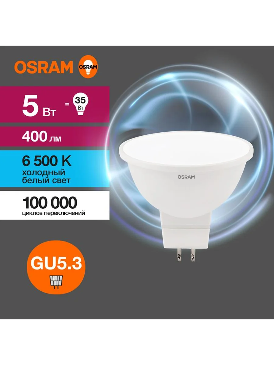 Светодиодные лампы OSRAM - разумная замена традиционным лампам накаливания или галогенным лампам. Светодиодные лампы OSRAM снижают затраты на освещение до 90% при сохранении привычного уровня освещенности. Эта лампа OSRAM серии LED Value выполнена в форме колбы MR16 с цоколем GU5.3. Материал колбы - пластик, исполнение - матовое. Световой поток 400 люмен, что соответствует лампе накаливания на 35 Вт. Подобные лампы (их еще называют споты) используются для внутреннего освещения. Особенно часто их используют для освещения ванных комнат внутри закрытого светильника. Эта лампа излучает холодный белый свет, угол пучка - узкий. Качество света на высоте: низкие пульсации защищают глаза, а высокий индекс цветопередачи позволяет видеть мир в его истинном цвете. Кроме того, лампы OSRAM полностью безопасны для здоровья, поскольку в них нет опасных материалов по европейскому стандарту RoHS, а также они не производят вредных электромагнитных излучений, что подтверждено ЭМС (сертификат электромагнитной совместимости). Лампа проработает долго: срок службы - 25000 часов, 2 года гарантии. Светодиодные лампы OSRAM - умный выбор для здоровья семьи и кошелька!