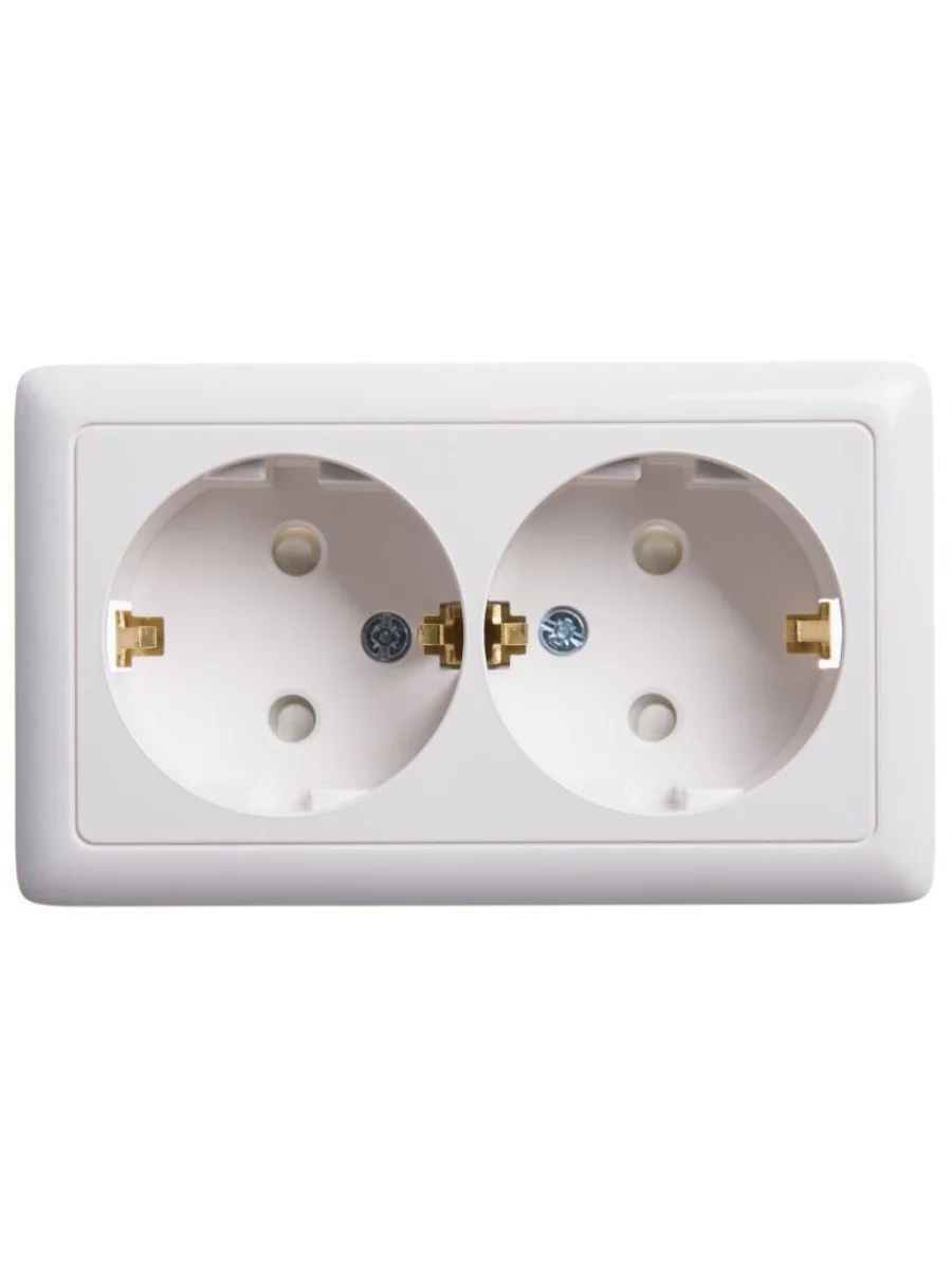 Розетка Systeme Electric (ранее Schneider Electric) ХИТ (открытой установки, цвет белый) двойная с заземлением, шторками предназначена для сетей до 250 В на ток до 16 А. Двойная розетка позволяет подключить два устройства в одном месте. Шторки обеспечивают дополнительную безопасность в доме, где находятся дети. Заземляющий контакт обеспечивает дополнительную защиту от удара электрическим током. При наличии заземления электрический потенциал уходит в землю, защищая человека. Сделано в России.