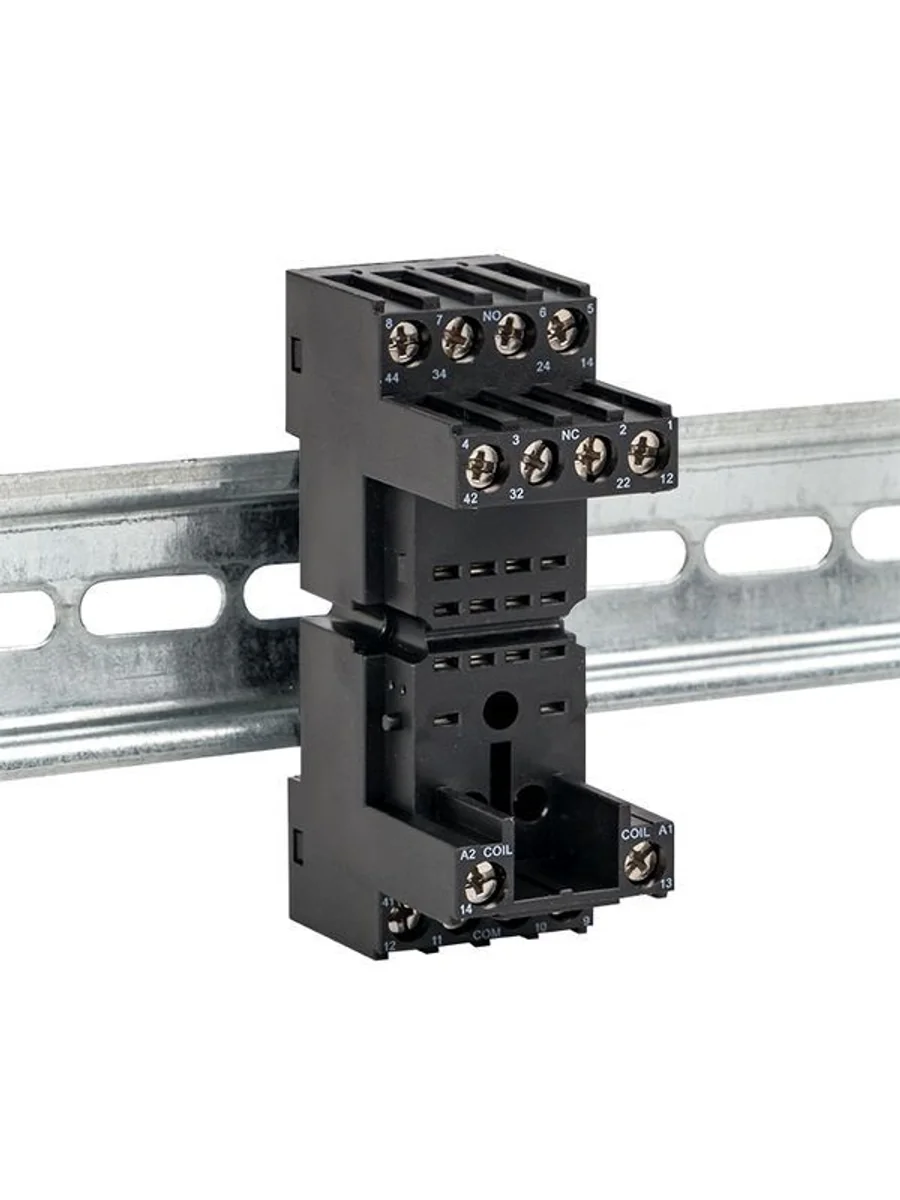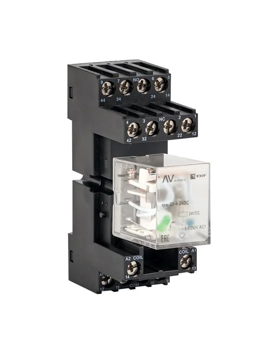 Реле промежуточные являются коммутационным оборудованием предназначенным для гальванической развязки цепей, размножения сигналов, увеличения коммутируемого тока или напряжения. Все реле комплектуются разъёмами для крепления реле на 35 мм монтажной DIN-рейке. На модульном разъеме располагаются клеммы выводов, переключающих контактов и катушки. Клеммы могут быть винтовые и самозажимные (маркировка Push-in). Возможна коммутация алюминиевым и медным проводом.