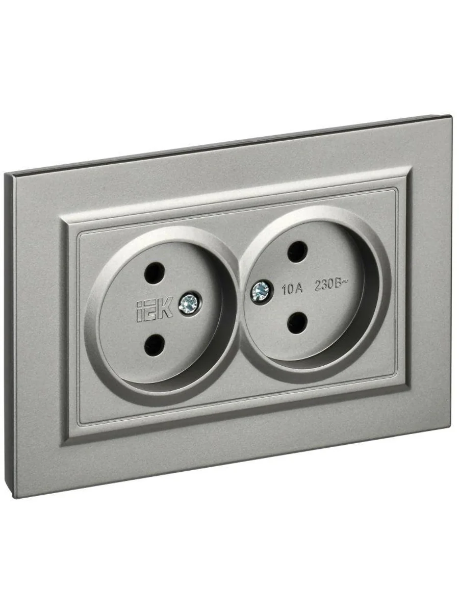 Розетка 2-м СП BRITE РС12-2-БрС 10А в сборе без заземл. без защ. шторок сталь IEK BR-R20-10-K46-F - купить в KeepBuilding | KeepBuilding
