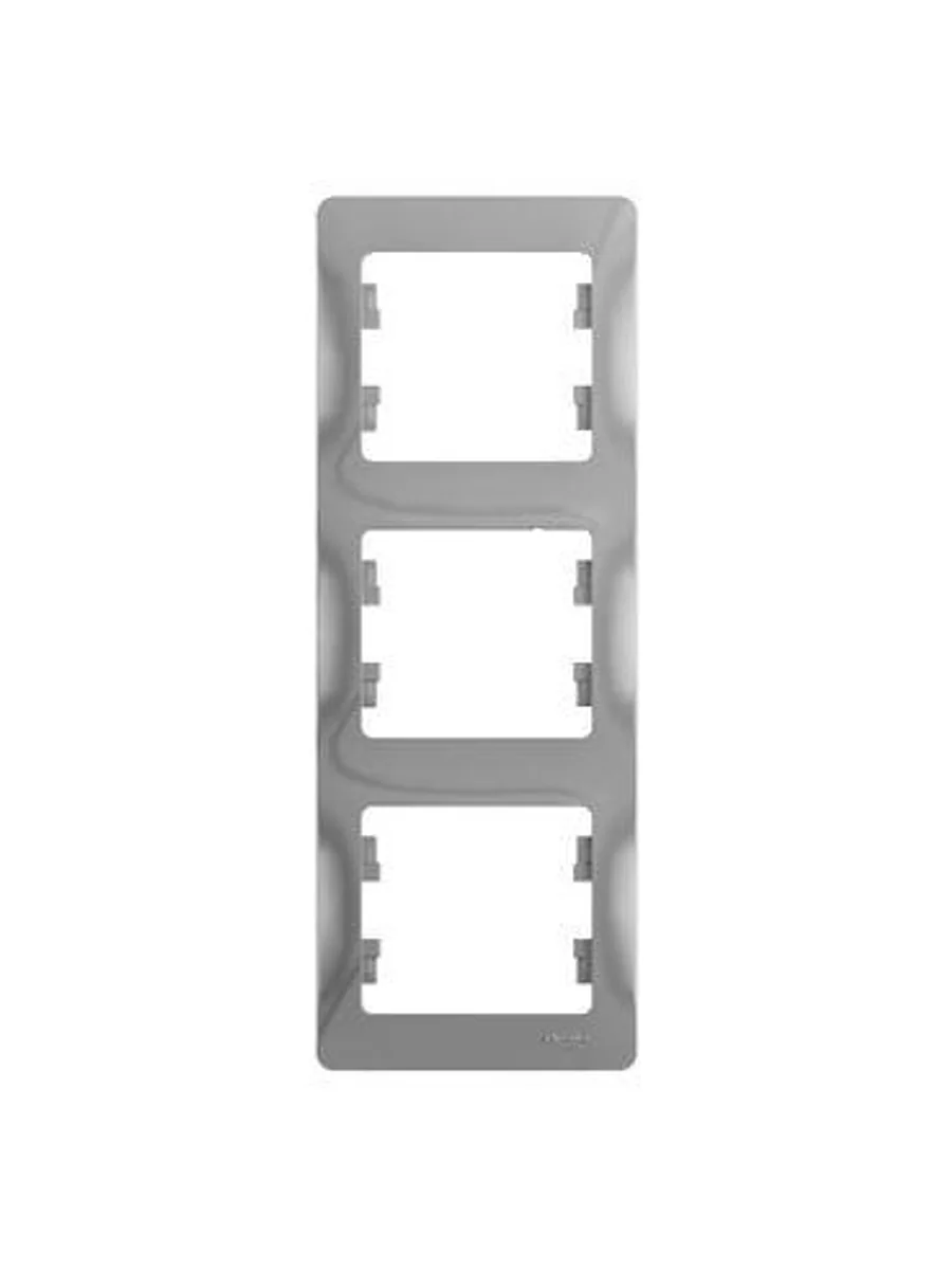 Рамка Systeme Electric (ранее Schneider Electric) серии Glossa (цвет алюминий) трёхместная. - Устанавливается в вертикальном положении. - Выполнена из материала PС+ASA, стойкого к УФ-излучению и появлению царапин. - Позволяет гармонично вписать электроустановочное изделие в интерьер помещения.