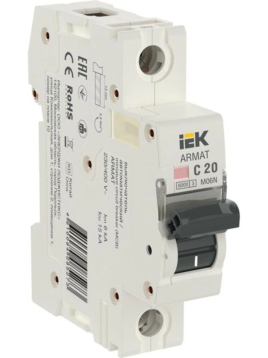 Выключатель автоматический модульный 1п C 20А M06N ARMAT IEK AR-M06N-1-C020 - купить в KeepBuilding | KeepBuilding