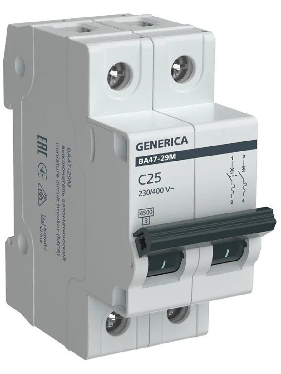 Автоматические выключатели ВА47-29M GENERICA предназначены для защиты распределительных и групповых цепей, имеющих различную нагрузку: – электроприборы, освещение – выключатели с характеристикой В, – двигатели с небольшими пусковыми токами (компрессор, вентилятор) – выключатели с характеристикой C, – двигатели с большими пусковыми токами (подъемные механизмы, насосы) – выключатели с характеристикой D. Автоматические выключатели ВА47-29M рекомендуются к применению в вводно-распределительных устройствах для жилых и общественных зданий.