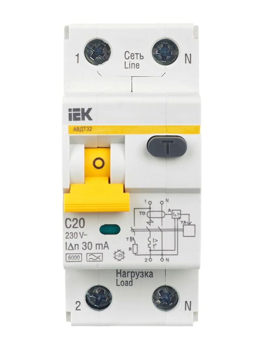 Выключатель автоматический дифференциального тока 2п (1P+N) C 20А 30мА тип A 6кА АВДТ-32 KARAT IEK MAD22-5-020-C-30 - купить в KeepBuilding | KeepBuilding