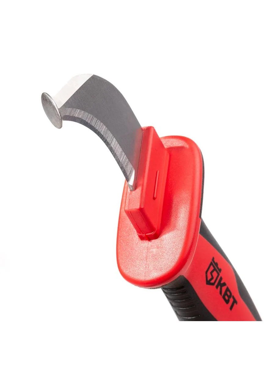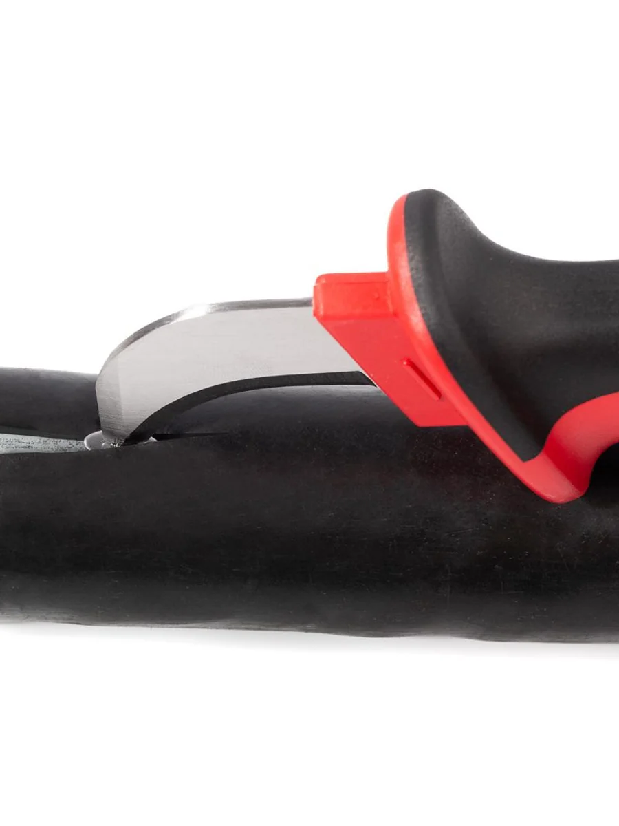 • Для работы под напряжением до 1000 В • Частично изолированное изогнутое лезвие с «пяткой» для легкого вскрытия оболочки кабеля без риска повреждения жилы • Лезвие из японской нержавеющей стали • Твердость лезвия HRC 51...53 • Изолированная рукоятка с упором для пальцев • Двухкомпонентная рукоятка из нескользящей термопластрезины • Защитный чехол для безопасного хранения и транспортировки • Снятие оболочки с многожильных кабелей без повреждения жильной изоляции • Вес: 116 г • Длина: 192 мм