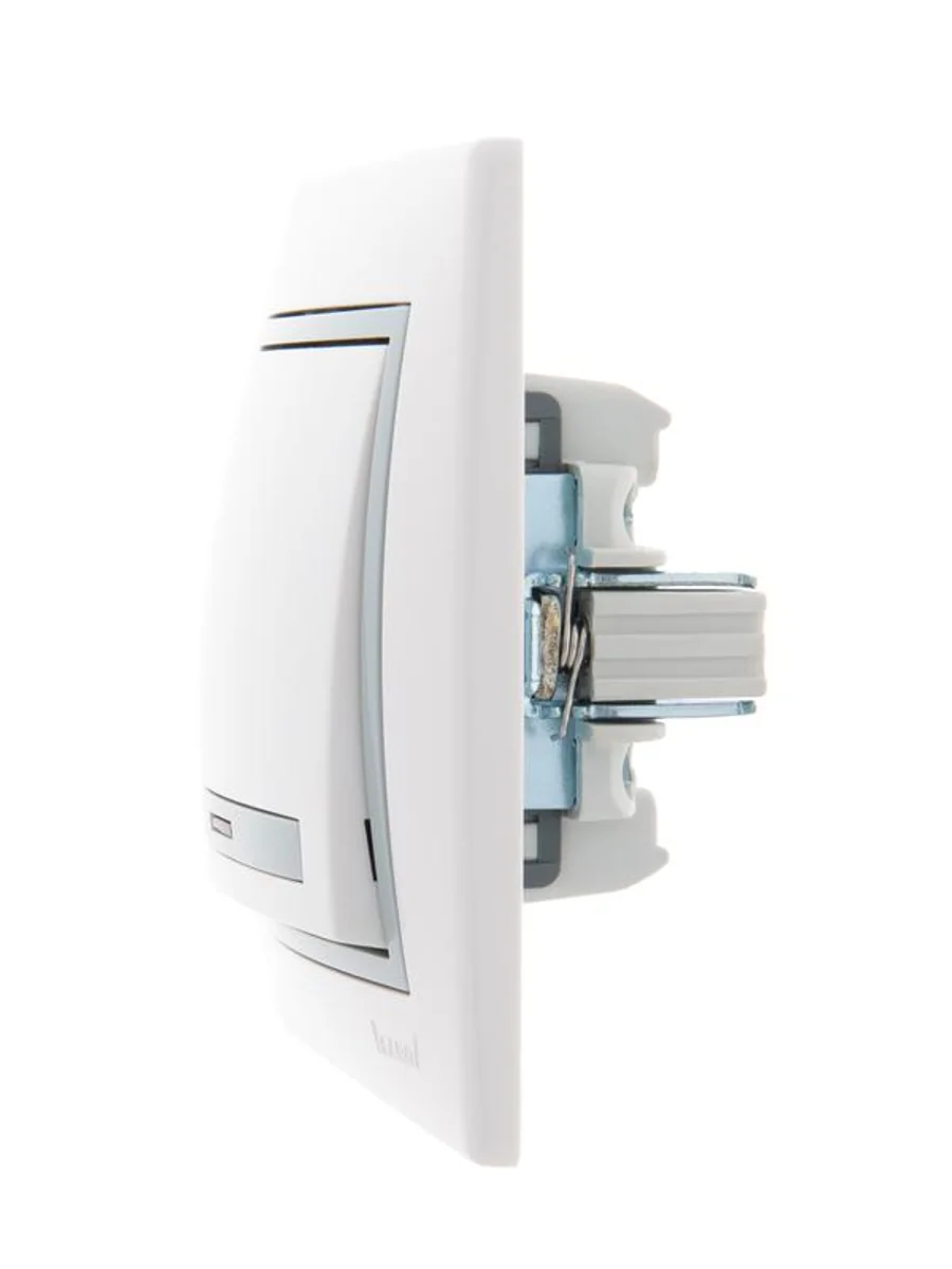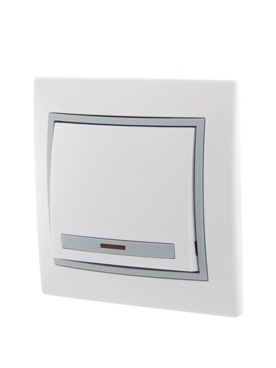 Выключатель 1-кл. СП Mira 10А IP20 с подсветкой с сер. вставкой бел. LEZARD 701-0215-111 - купить в KeepBuilding | KeepBuilding