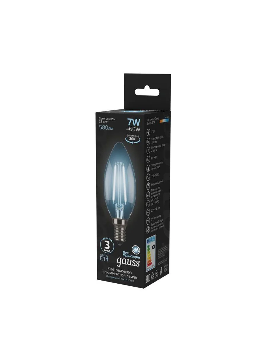 Лампа светодиодная филаментная Black Filament 7Вт свеча 4100К нейтр. бел. E14 580лм GAUSS 103801207 - купить в KeepBuilding | KeepBuilding