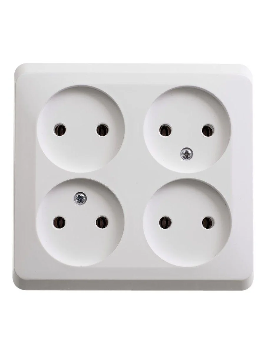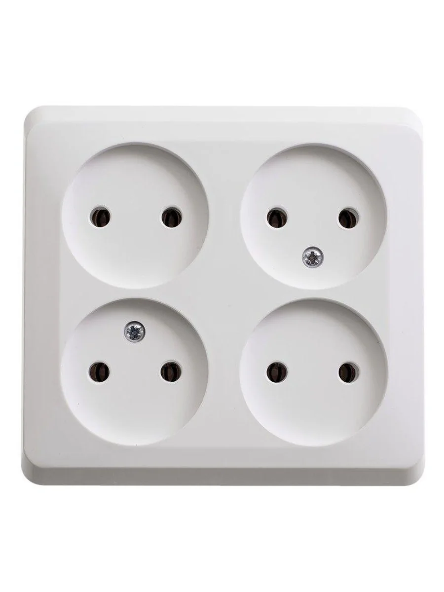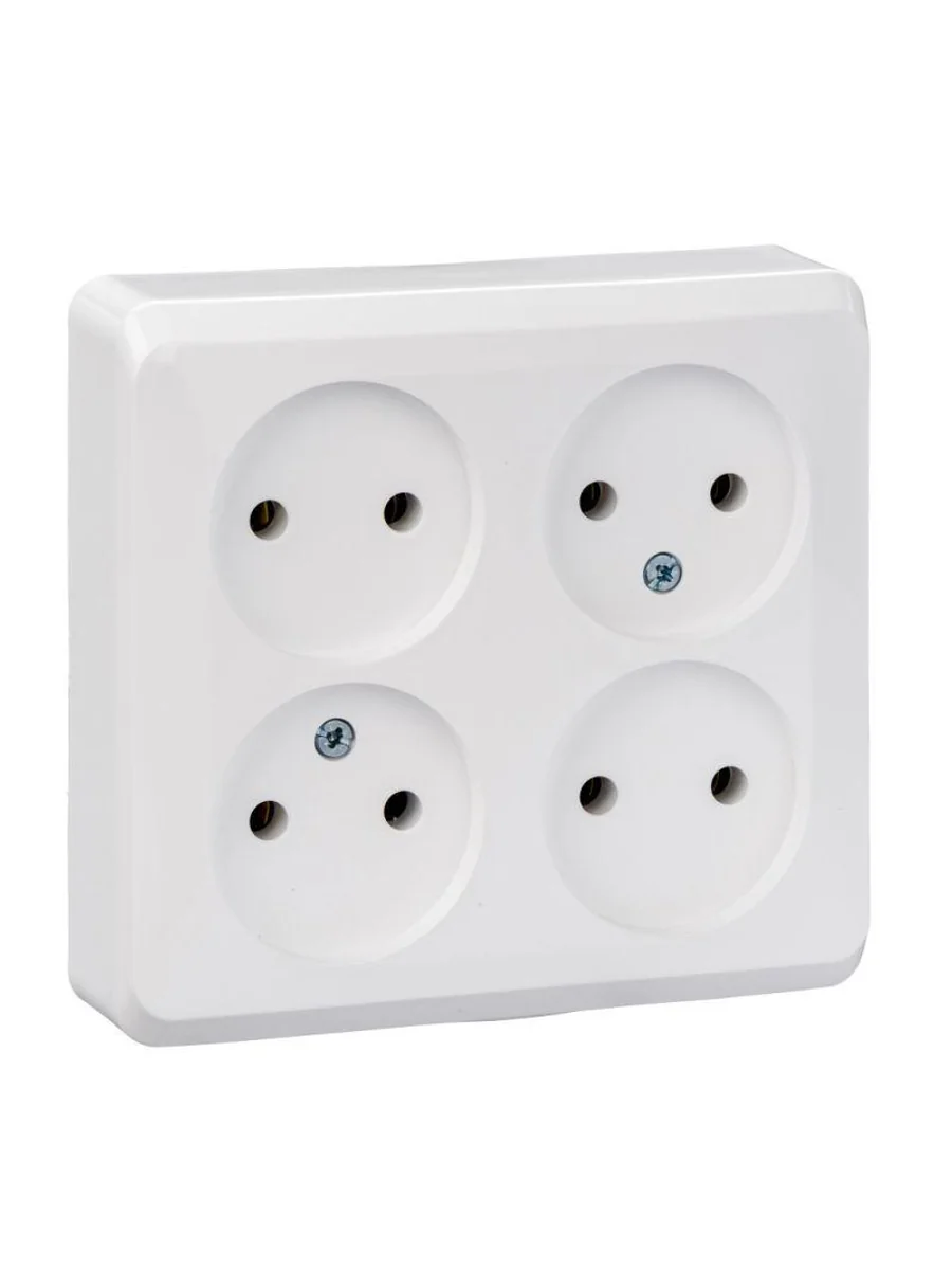 Розетка Systeme Electric (ранее Schneider Electric) ЭТЮД (белый, открытой установки) четырёхместная, без шторок и заземления предназначена для применения в сетях до 250В, на ток до 16А. Четырёхместная розетка позволяет подключить четыре устройства в одном месте. Она проста в установке и удобна в применении. Сделано в России.