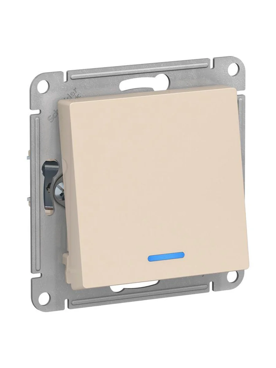 Механизм переключателя 1-клавишного с подсветкой Systeme Electric (ранее Schneider Electric) серии AtlasDesign в цвете бежевый подходит для сетей 250 В, на ток 10 А. Благодаря светодиодной подсветке синего цвета изделие легко найти в темноте. Переключатель позволяют управлять одним источником света с двух точек. Лицевые детали из качественного ABS-пластика, устойчивого к царапинам и УФ-излучению.