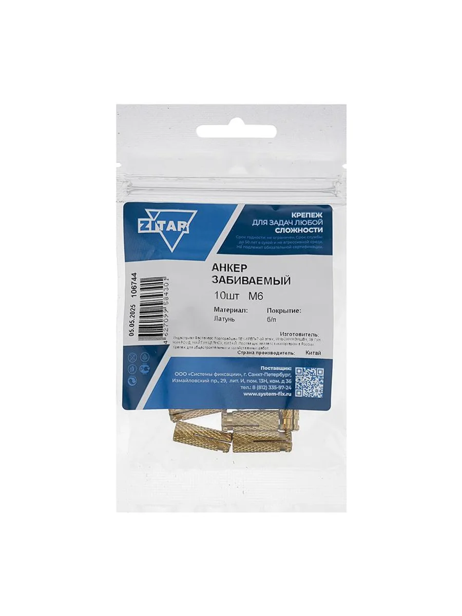 Анкер забивной М6 латунь (пакет) (уп.10шт) Zitar 106744