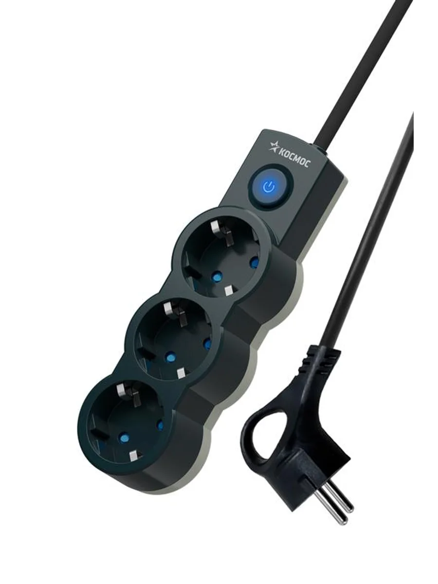 Удлинитель 3х5м с заземл. 10А IP20 2200Вт 220В защ. шторки ПВС 3х1 с выкл. черн. КОСМОС YKsm5m-3g-Z-V10A-B - купить в KeepBuilding | KeepBuilding