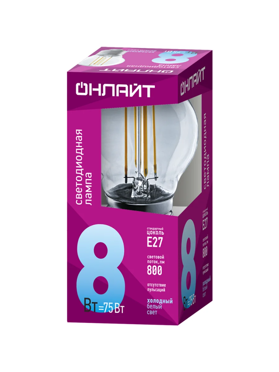 Лампа светодиодная филаментная 80 881 OLL-F-G45-08-230-4K-E27 8Вт шар прозрачная 4000К нейтр. бел. E27 800лм 220-240В ОНЛАЙТ 80881 - купить в KeepBuilding | KeepBuilding