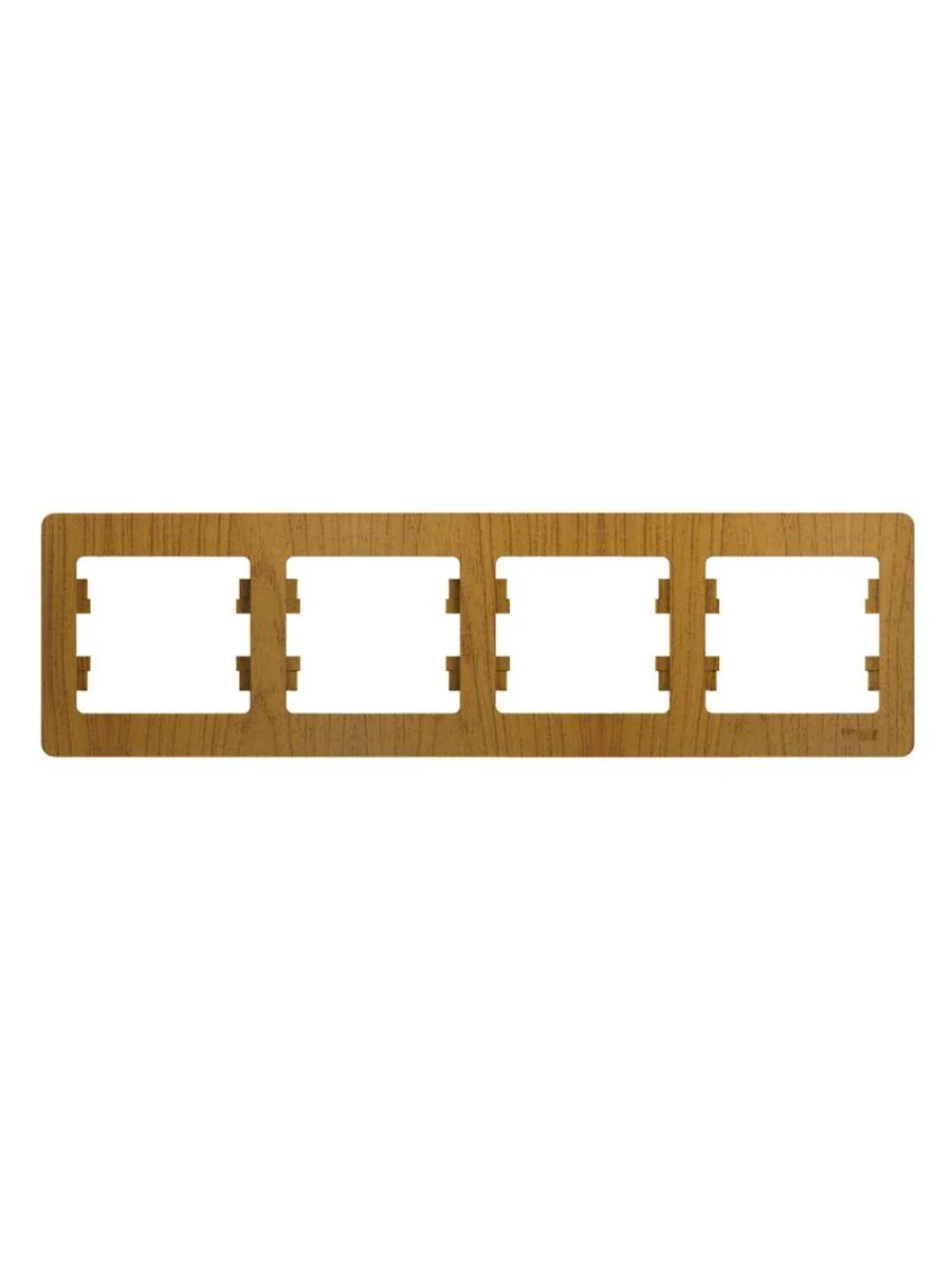 Рамка Systeme Electric (ранее Schneider Electric) серии Glossa (цвет дерево дуб) четырёхместная. - Устанавливается в горизонтальном положении. - Выполнена из материала PС+ASA, стойкого к УФ-излучению и появлению царапин. - Позволяет гармонично вписать электроустановочное изделие в интерьер помещения.