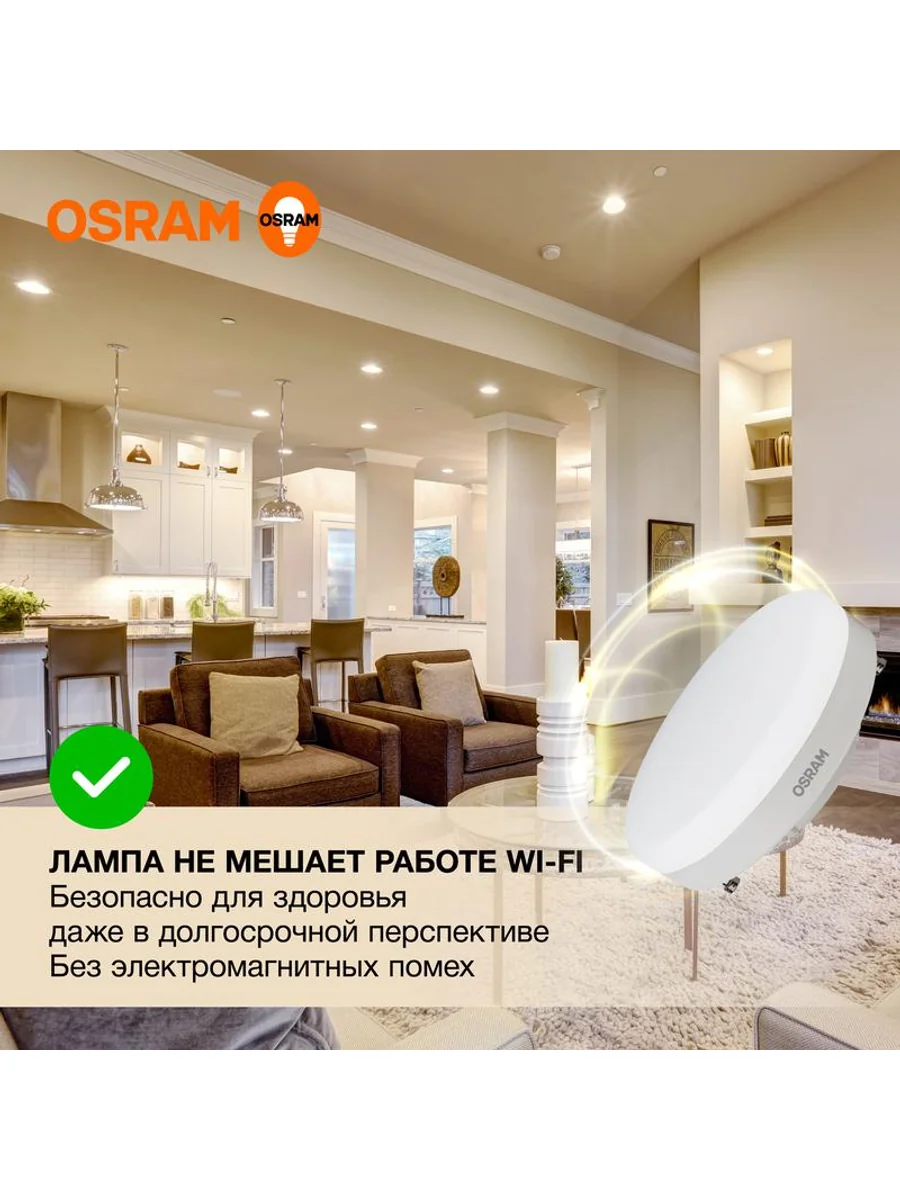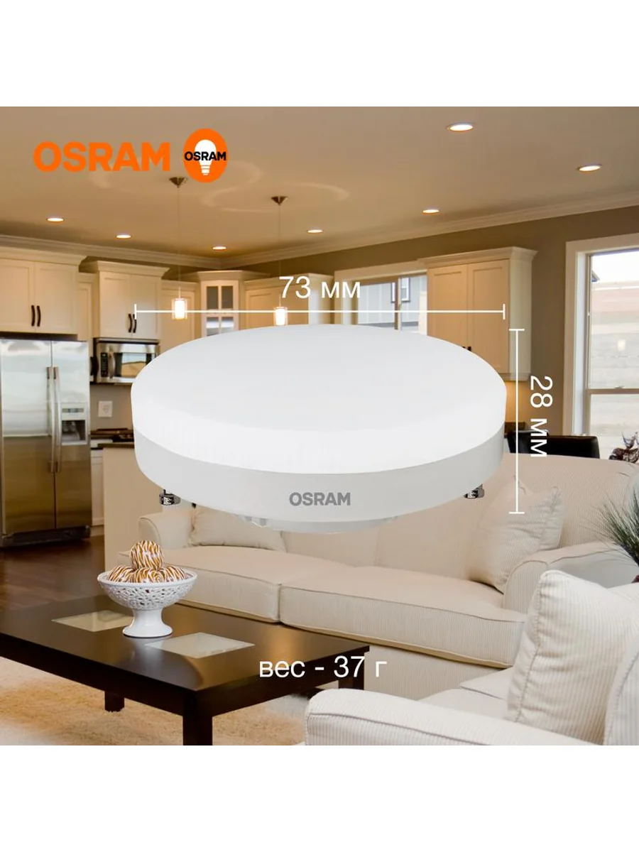 Светодиодные лампы OSRAM - разумная замена традиционным лампам накаливания или галогенным лампам. Светодиодные лампы OSRAM снижают затраты на освещение до 90% при сохранении привычного уровня освещенности. Эта лампа OSRAM серии LED Value выполнена в форме колбы GX с цоколем GX53. Материал колбы - пластик, исполнение - матовое. Световой поток 640 люмен, что соответствует лампе накаливания на 60 Вт. Такие лампы обычно используют для потолков; обязательно проверьте совместимость со светильником. Эта лампа излучает теплый белый свет, угол пучка - узкий. Качество света на высоте: низкие пульсации защищают глаза, а высокий индекс цветопередачи позволяет видеть мир в его истинном цвете. Кроме того, лампы OSRAM полностью безопасны для здоровья, поскольку в них нет опасных материалов по европейскому стандарту RoHS, а также они не производят вредных электромагнитных излучений, что подтверждено ЭМС (сертификат электромагнитной совместимости). Лампа проработает долго: срок службы - 25000 часов, 2 года гарантии. Светодиодные лампы OSRAM - умный выбор для здоровья семьи и кошелька!