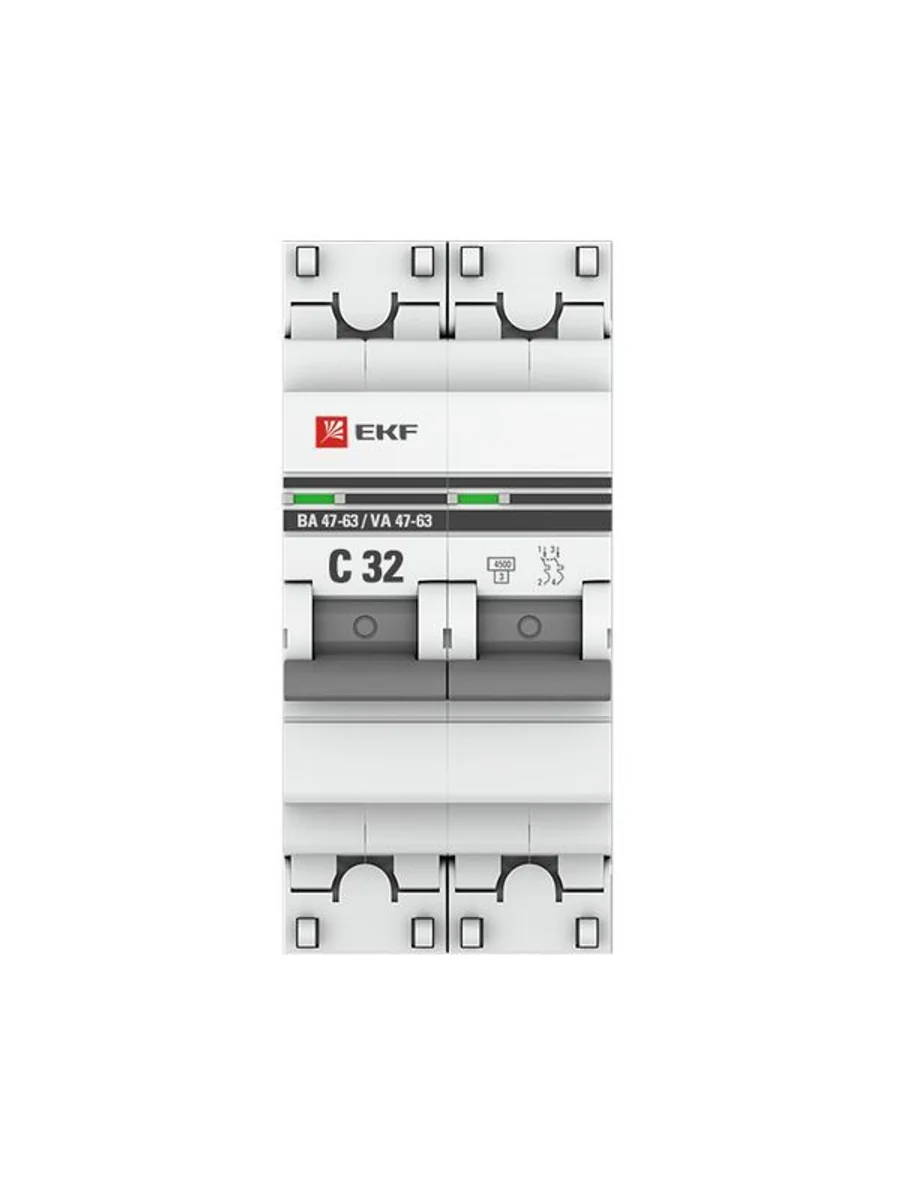 Выключатель автоматический модульный 2п C 32А 4.5кА ВА 47-63 PROxima EKF mcb4763-2-32C-pro - купить в KeepBuilding | KeepBuilding