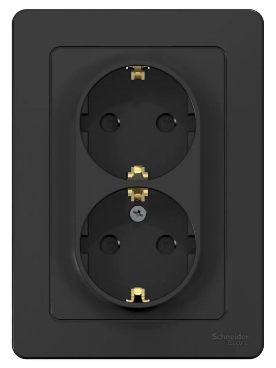 Розетка Systeme Electric (ранее Schneider Electric) BLANCA (антрацит, скрытой установки) двухместная, с заземлением, шторками предназначена для сетей до 250В, на ток до 16А. Двухместная розетка позволяет подключить два устройства в одном месте. Шторки и заземление обеспечивают дополнительную безопасность. Корпус изделия выполнен из ABS-пластика.