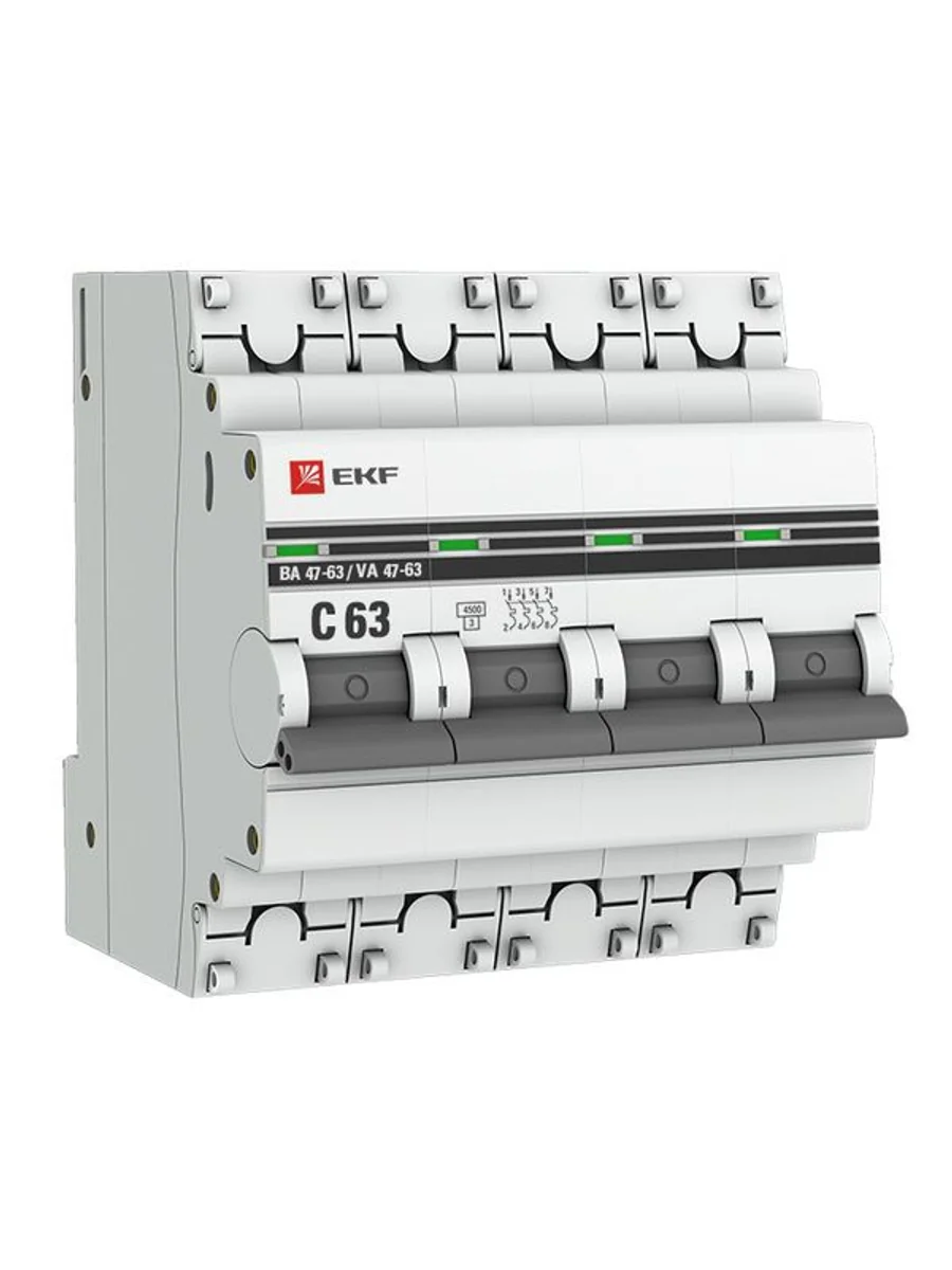 Выключатель автоматический модульный 4п C 63А 4.5кА ВА 47-63 PROxima EKF mcb4763-4-63C-pro - купить в KeepBuilding | KeepBuilding