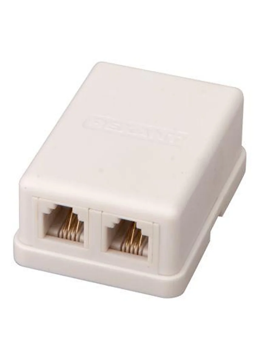 Телефонная розетка 2х6Р4С REXANT относится к категории 3. Применяется для подключения кабеля проводных телефонных аппаратов к телефонной сети. Используется в офисах и на предприятиях. Удобна для помещений, где требуется сразу несколько функционирующих телефонных аппаратов. Оснащена двумя параллельно расположенными гнездами. Каждое гнездо имеет 6 пинов 4 из которых заняты медными контактами (2 контакта используются под питание, 2 – под телефонную линию). Компактный корпус устройства выполнен из белого матового пластика. Розетка отличается качеством и долговечностью.