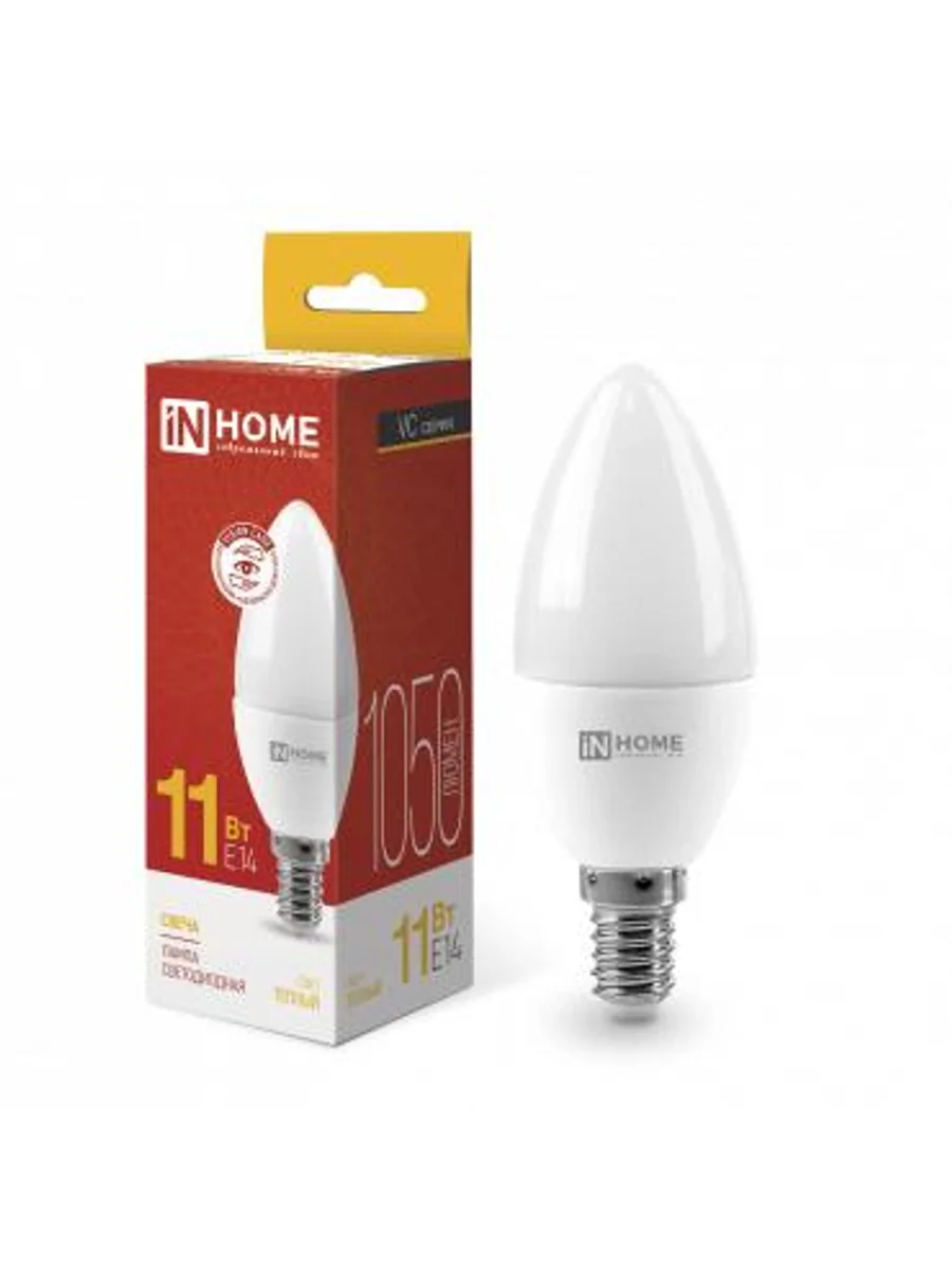 Лампа светодиодная LED-СВЕЧА-VC 11Вт свеча 3000К тепл. бел. E14 1050лм 230В IN HOME 4690612020464 - купить в KeepBuilding | KeepBuilding