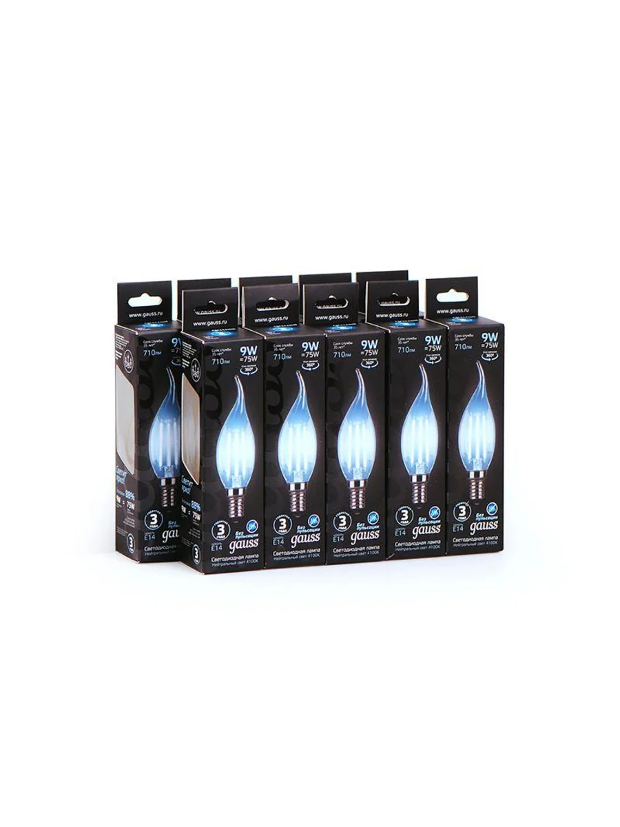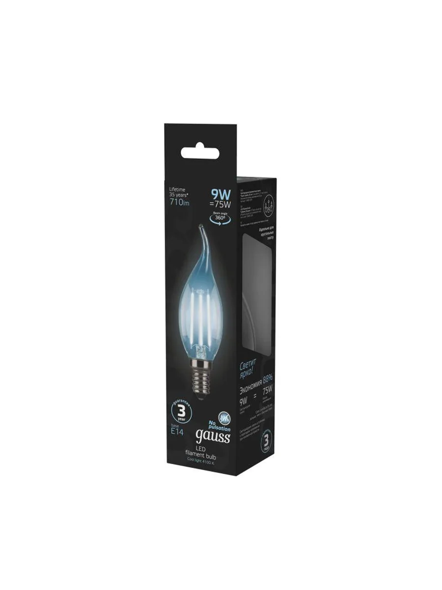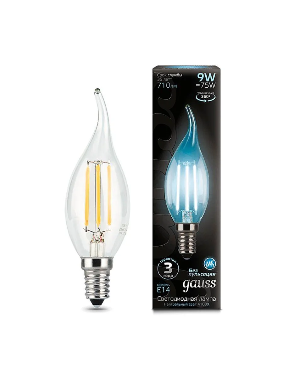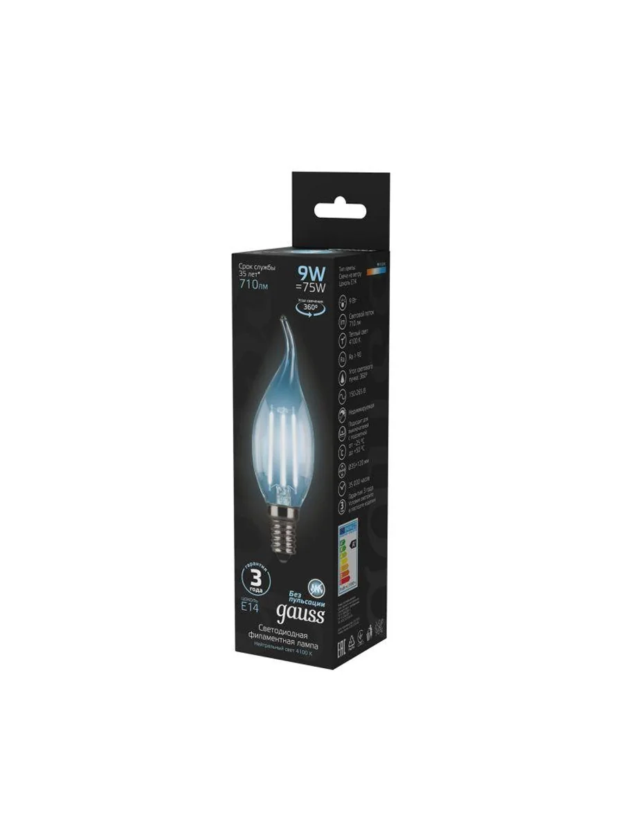 Лампа светодиодная филаментная Black Filament 9Вт свеча на ветру 4100К нейтр. бел. E14 710лм GAUSS 104801209 - купить в KeepBuilding | KeepBuilding