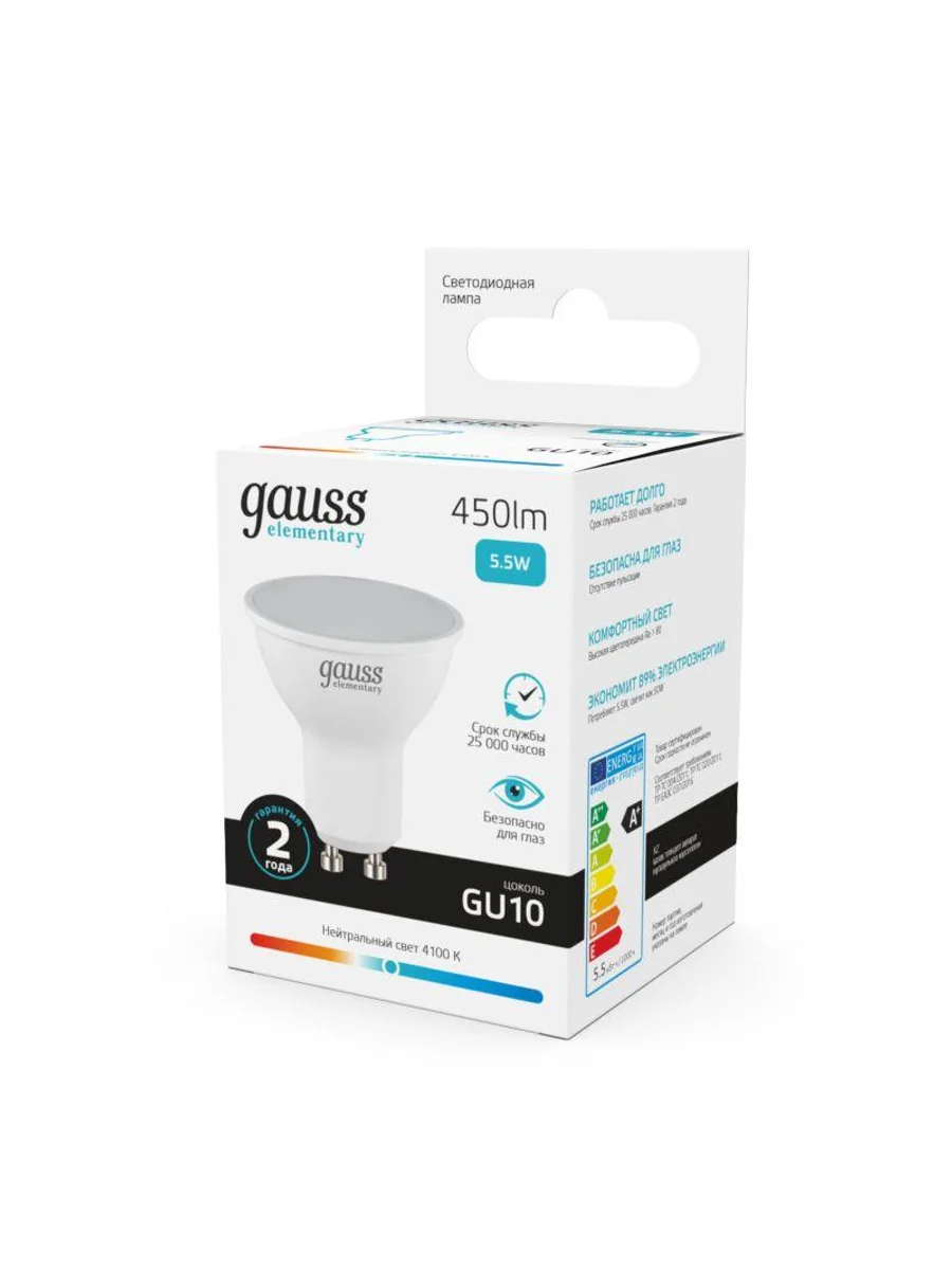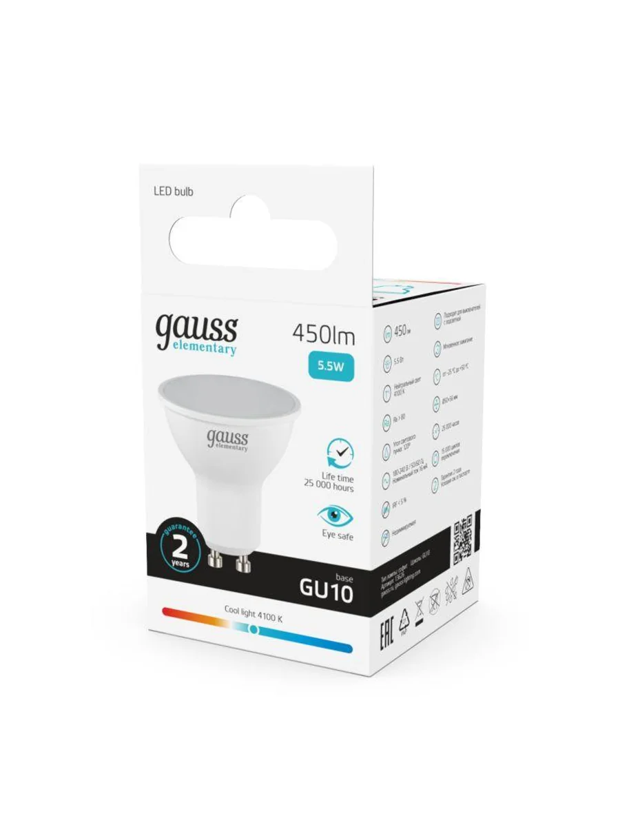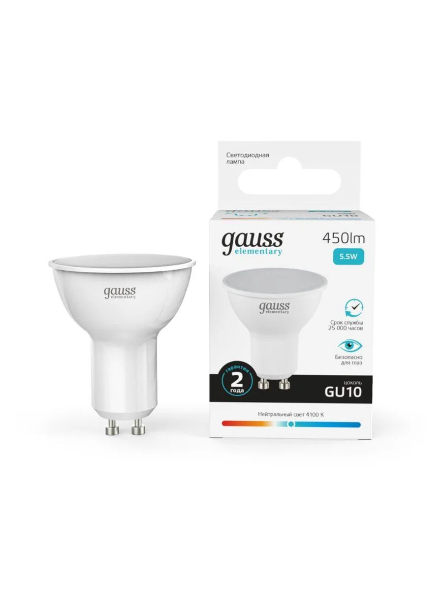 Лампа светодиодная Elementary 5.5Вт MR16 софит 4100К нейтр. бел. GU10 450лм GAUSS 13626 - купить в KeepBuilding | KeepBuilding
