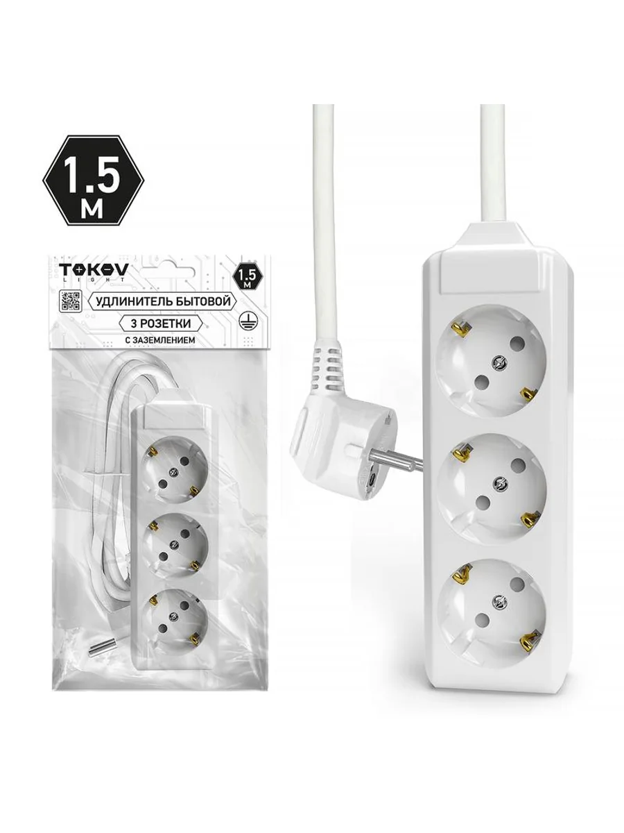 Удлинитель 3х1.5м с заземл. 10А 3х1.5 TOKOV LIGHT TKL-C01-BU3-1.5-1.5-Z - купить в KeepBuilding | KeepBuilding