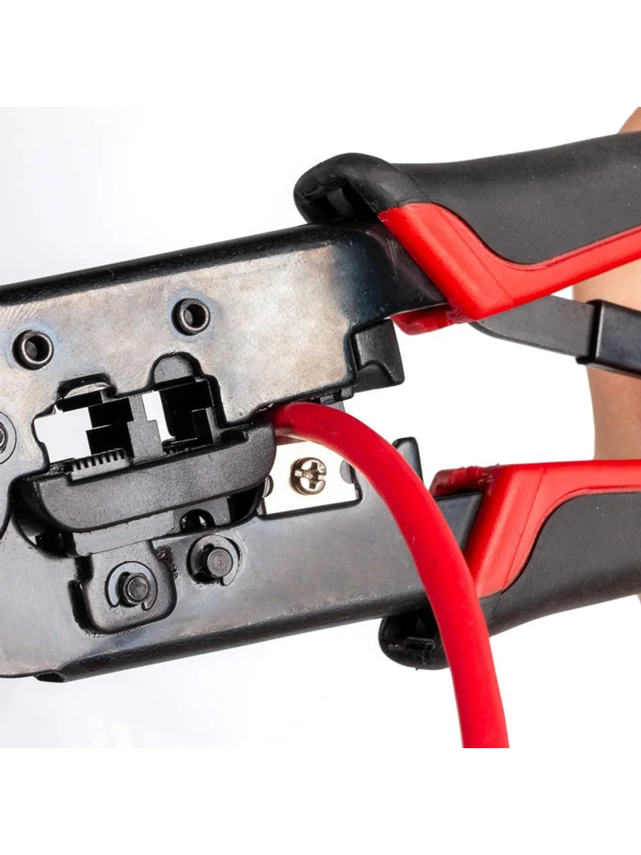 • 4 в 1: • обжим разъемов RJ • снятие изоляции с плоских телефонных проводов • снятие оболочки с круглых проводов типа UTP, STP • резка проводов • Обжим разъемов: 8Р8С (RJ-45), 6Р6С (RJ-12), 6P4C (RJ-11), 6Р2С • Встроенный храповой механизм обеспечивает полный цикл опрессовки • Винт разблокировки храпового механизма • Обработка поверхности: воронение • Двухкомпонентные рукоятки из мягкой нескользящей термопластрезины • Легкая, компактная и экономичная модель для обжима разъемов RJ-45/12/11 • Вес: 300 г • Длина: 187 мм