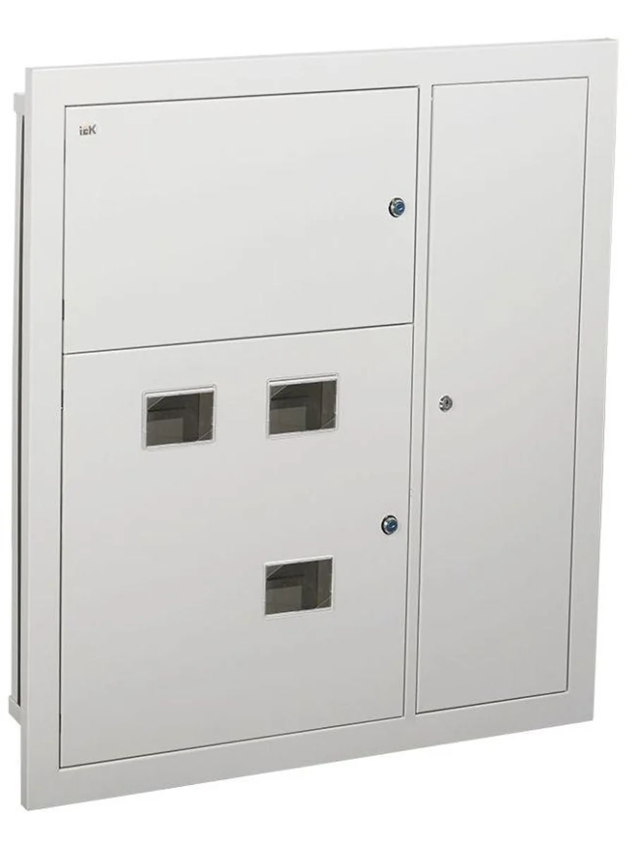 Используется для сборки этажного распределительного щита на 3 квартиры, предназначенного для приема и распределения электроэнергии в жилых и общественных зданиях, а также для защиты отходящих линий при перегрузках и коротких замыканиях. Сварной металлический корпус состоит из трех отсеков: вводно-учетного, распределительного, отсека слаботочного оборудования. В вводно-учетном и распределительном отсеках размещены DIN-рейки для крепления счетчиков (по количеству квартир). В распределительном отсеке установлены DIN-рейки для аппаратов групповых линий и рейка для установки шин N и РЕ. Отсек укомплектован оперативной панелью. Отсек слаботочного оборудования снабжен перфорированными профилями для прокладки теле- и радиосетей, телефонных линий, сетей охранной сигнализации, домофонов и т.п. Для обеспечения пожарной безопасности между слаботочным и силовым отсеками расположена разделительная перегородка.