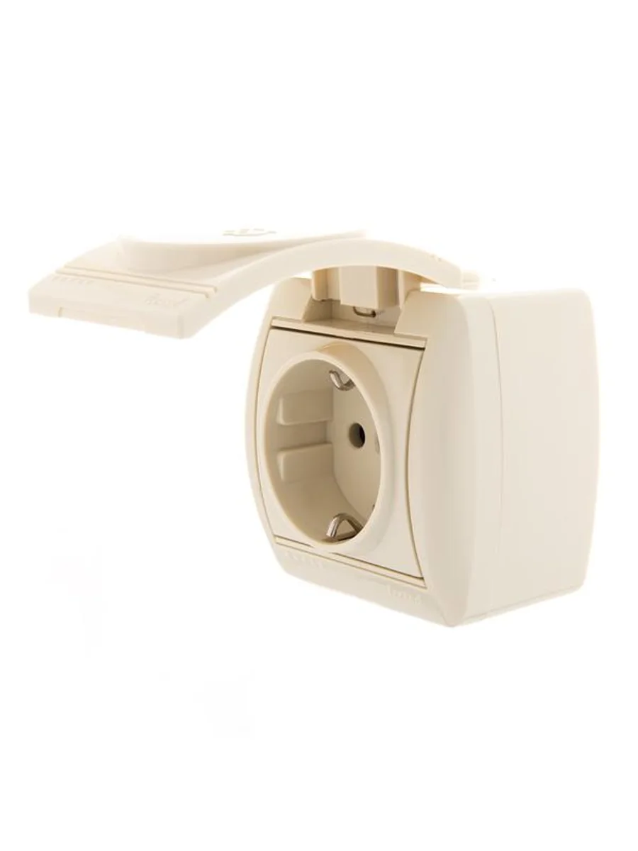 Розетка 1-м ОП Ната с защ. крышкой керам. с заземл. крем. Lezard 710-0300-123 представляет собой электроустановочный механизм одноместной розетки со стороной, равной 90 мм, кремового цвета. Корпус изготовлен из негорючего пластика, устойчивого к воздействию ультрафиолетовых лучей, поэтому фасадная панель сохраняет свой первоначальный цвет более продолжительное время и не желтеет в процессе эксплуатации), более устойчив к механическим повреждениям (царапинам и проч.), высокой температуре, не плавится и не чернеет. Основание керамическое. Предусмотрена защитная непрозрачная крышка. Монтируется на глубину 50 мм, на поверхность стены.