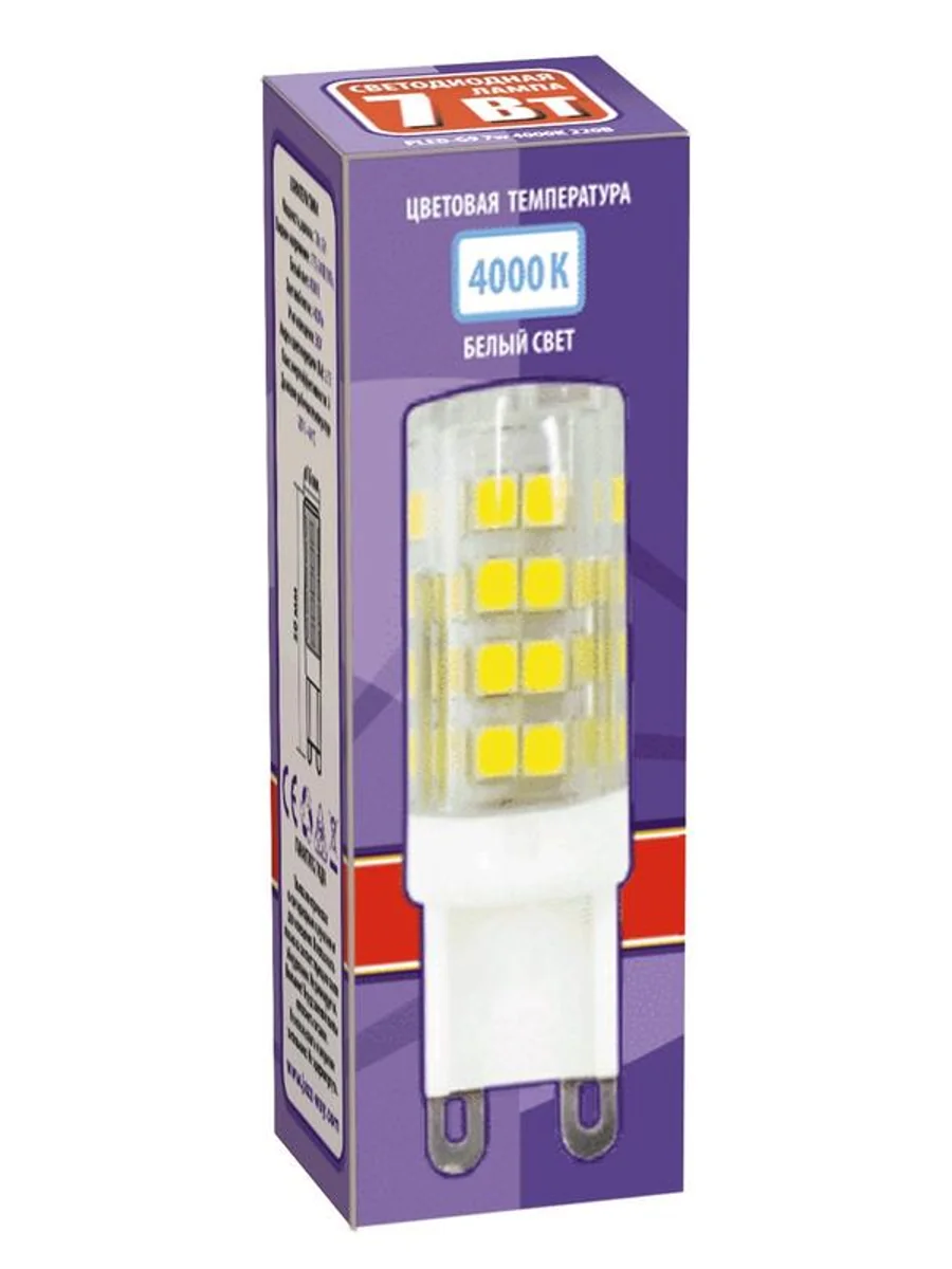Светодиодные лампы PLED-G9 JAZZWAY повторяют форму и размеры стандартных галогенных капсюльных ламп и идеально подходят к различным светильникам, в которых используются данные типы ламп. PLED-G9 7W – увеличенный световой поток. Материал корпуса ламп PLED-G9 7W: эпоксидная смола. Температура эксплуатации: –20...+40 °С. Гарантия на все лампы: 2 года.