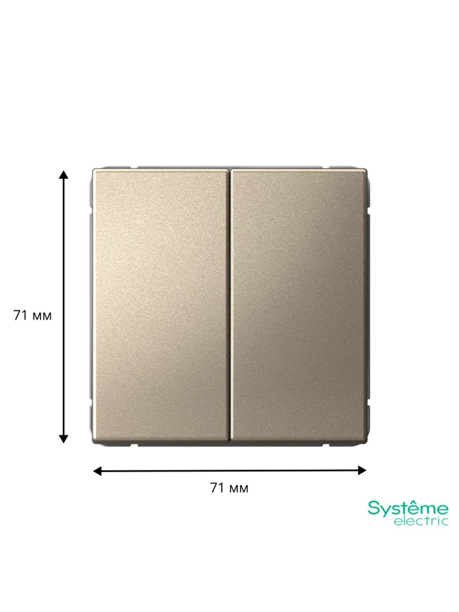 Механизм с быстрозажимными клеммами Systeme Electric серии ArtGallery в цвете шампань переключателя 2-клавишного подходит для сетей 250 В, на ток 10 А. С помощью новых быстрозажимных клемм монтаж стал быстрее. Для подключения не требуется отвертка. Классическое цветовое решение станет изюминкой любого интерьера. Лицевые детали из качественного ABS-пластика, устойчивого к царапинам и УФ-излучению. Лучший промышленный дизайн (по итогам премии Минпромторг 2023).