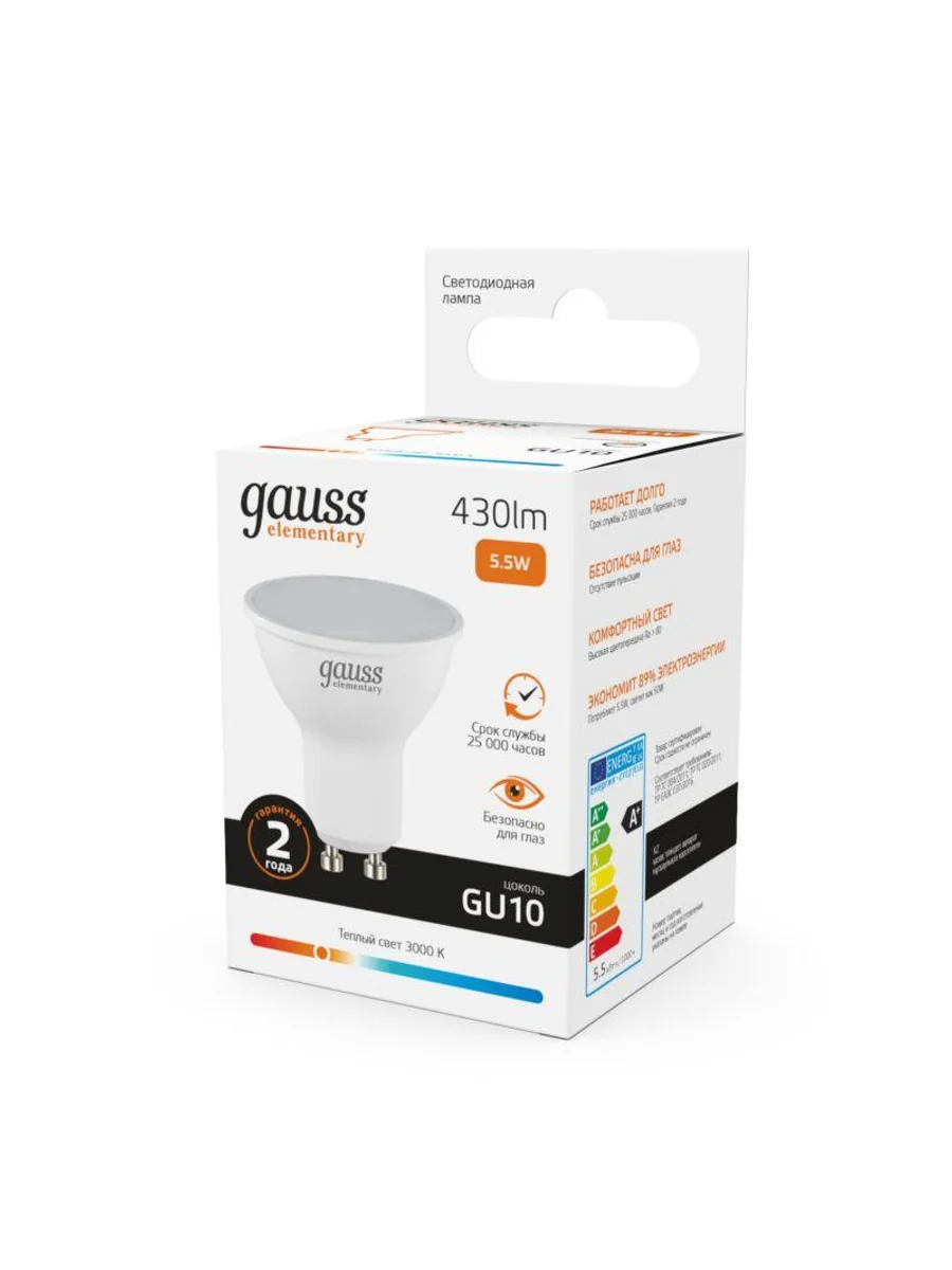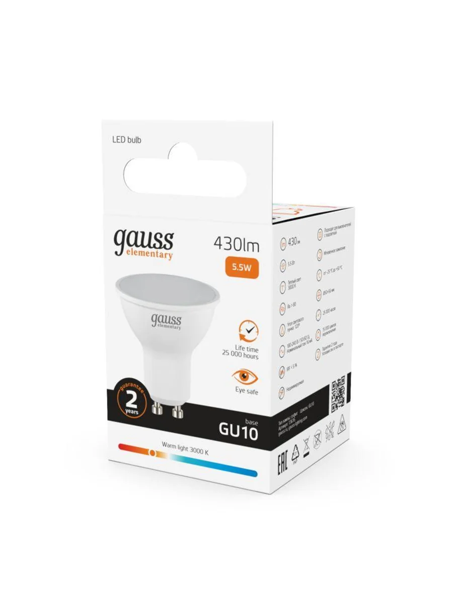Лампа светодиодная Elementary 5.5Вт MR16 софит 3000К тепл. бел. GU10 430лм GAUSS 13616 - купить в KeepBuilding | KeepBuilding